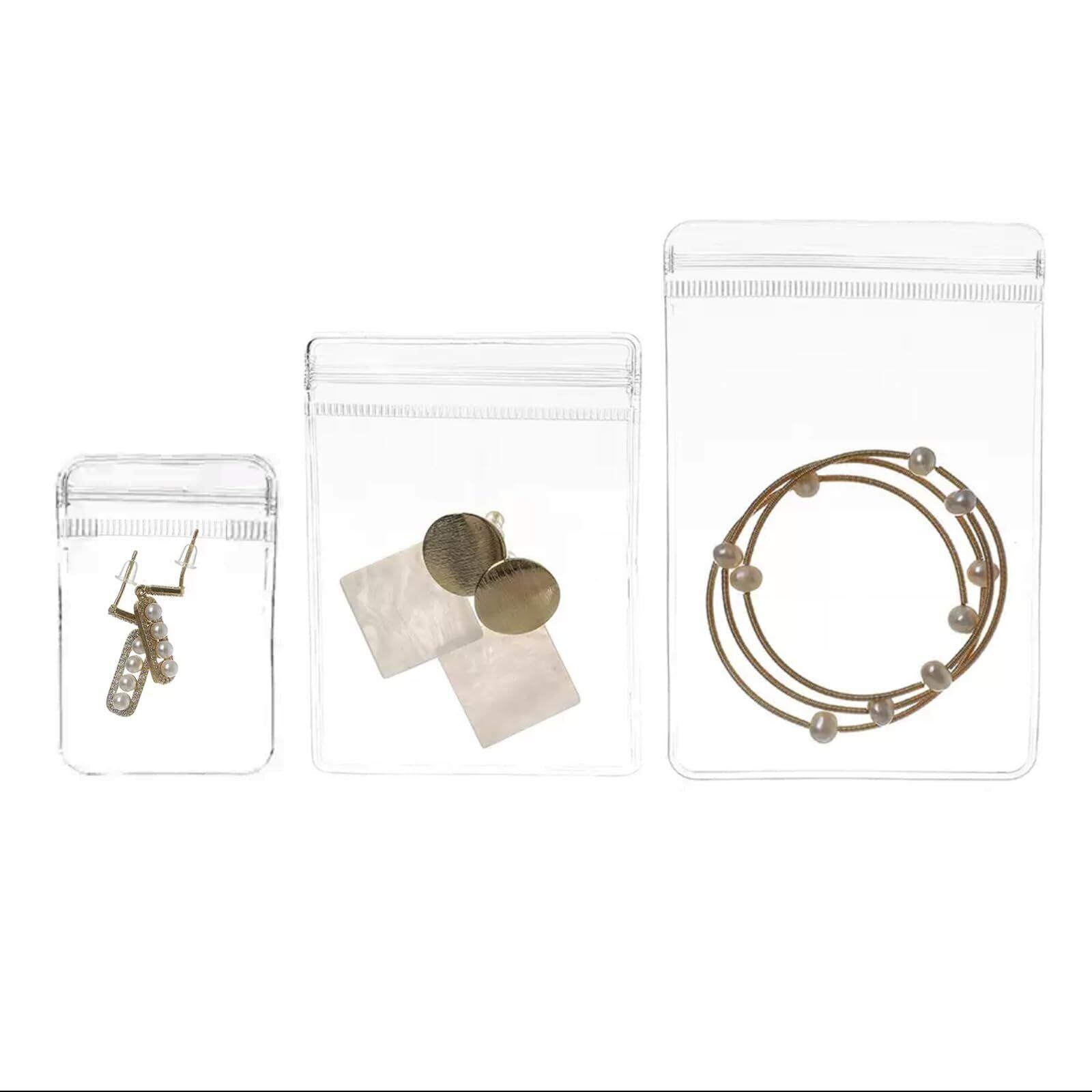 高透明PVCで中身を一目瞭然:透明度の高いPVC素材を採用し、袋内のジュエリーを瞬時に確認可能。密封構造でホコリや湿気から守りつつ、デザイン性を損ないません。