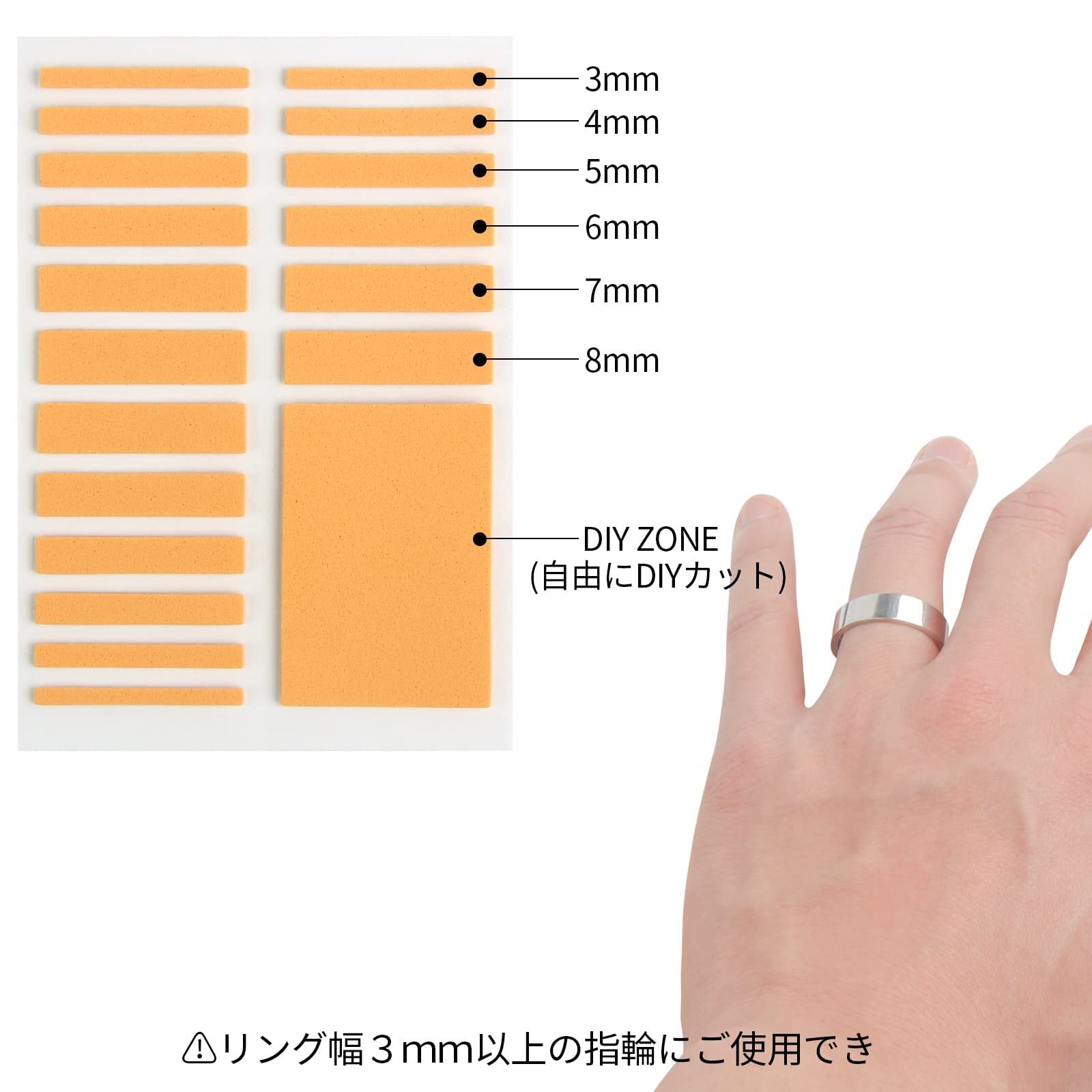 サイズ:厚さ:1.5MM 幅:3MM/4MM/5MM/6MM/7MM/8MM+自由にDIYカットできるDIY ZONE(️リング幅3mm以上の指輪にご使用できます。3mm以下の指輪に使用すると、粘着シートの粘着面が狭くなり、指輪にしっかりと接着できなくなる場合があります。)