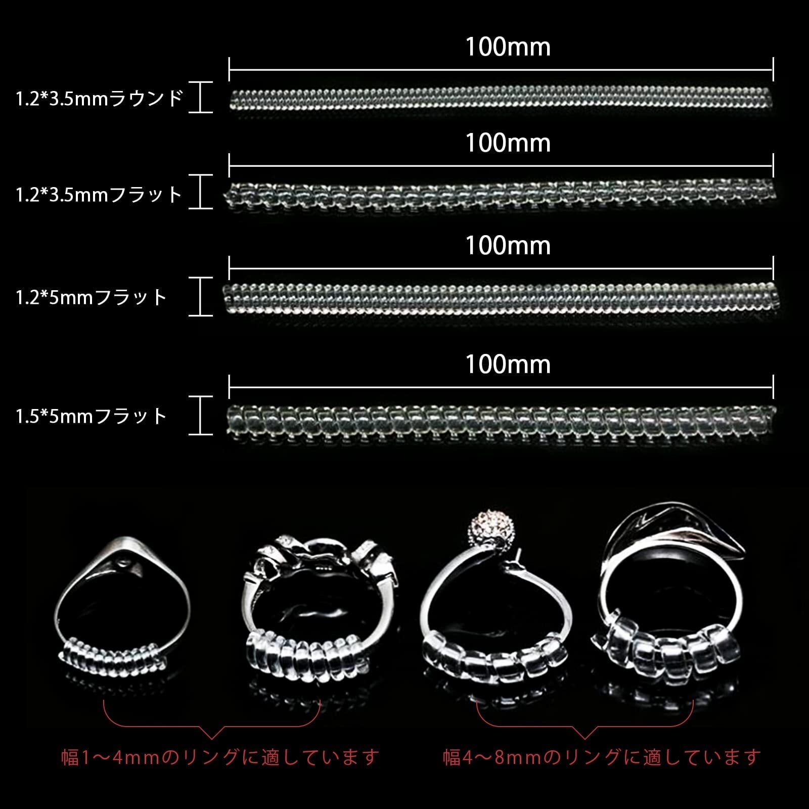 【在庫処分】ZHEJIA リングアジャスター 指輪 サイズ調節【4個セット】指輪サイズ調節用 クルクル回る緩めな指輪のサイズ直しに 指輪に巻きつけるだけの簡単取り付け PVCスプリングワイヤ リングストッパー | 無意味ステッカー