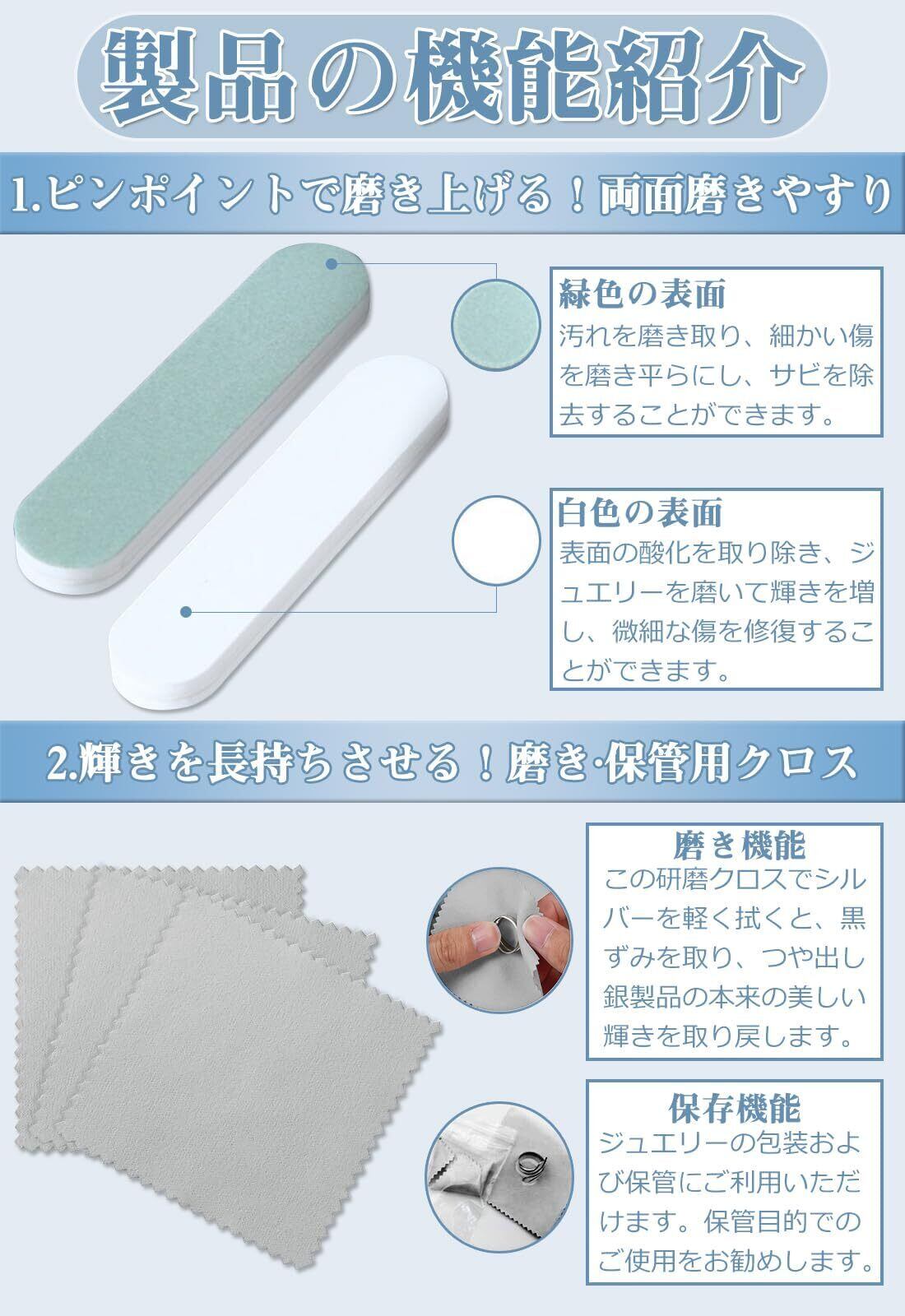 【高品質素材】みがき布が柔らかい生布に微粒子の研磨剤を含、超極細繊維が採用されます。裏表どちらも使用可能な、貴金属の小キズや汚れがこれ1枚で落とせて艶を出せます。 使用簡単:この研磨クロスは、シルバーの表面をそっと拭くだけで黒ずみを取り、簡単にジュエリーがきれいに蘇ります。