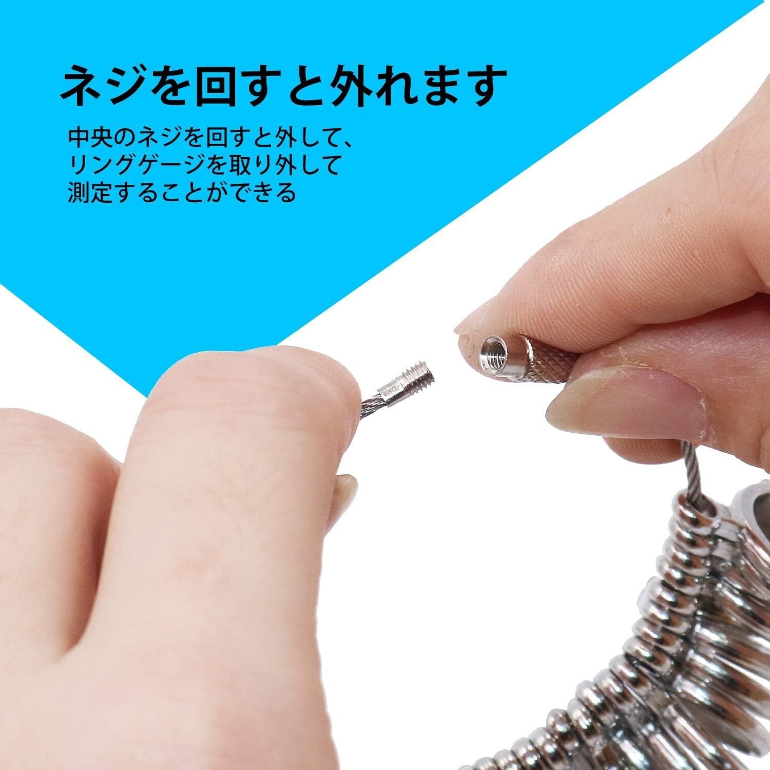 【リングの管理がしやすい】:リングゲージを円環で大きさ順にまとめています。そのため、リングの種類が多くて管理がしづらいという点に応えています。自分の指のサイズにあるリングを見つけやすく、そのままはめることができるのがうれしい点です。