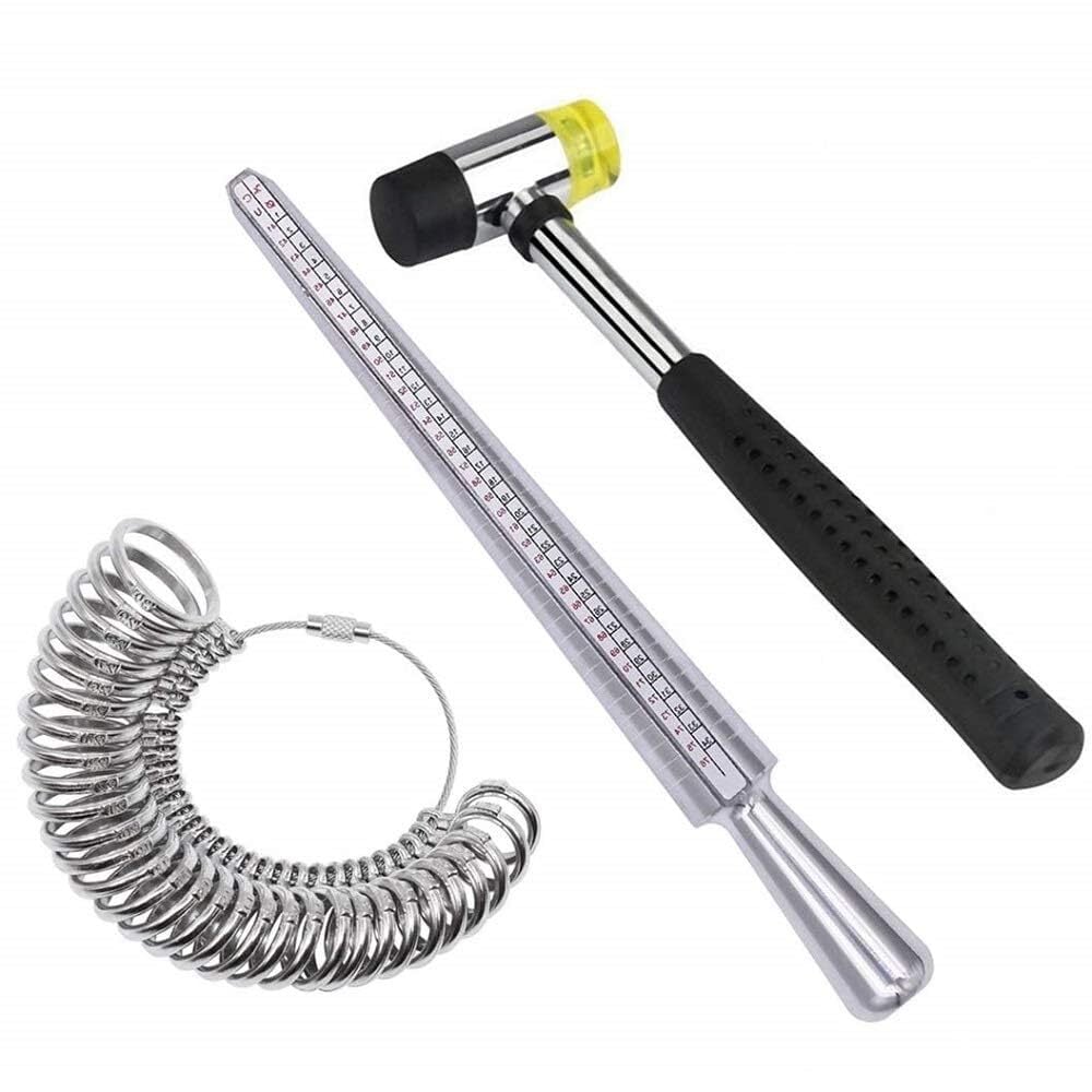 日本規格リングサイズ3点セット 指輪サイズゲージ リングゲージ リング棒 ハンマー まで対応 日本標準規格 指輪 サイズ 調整 プロ仕様 指輪測定用 補修ツール ジュエリー用 工具 道具 (リング定規セット)