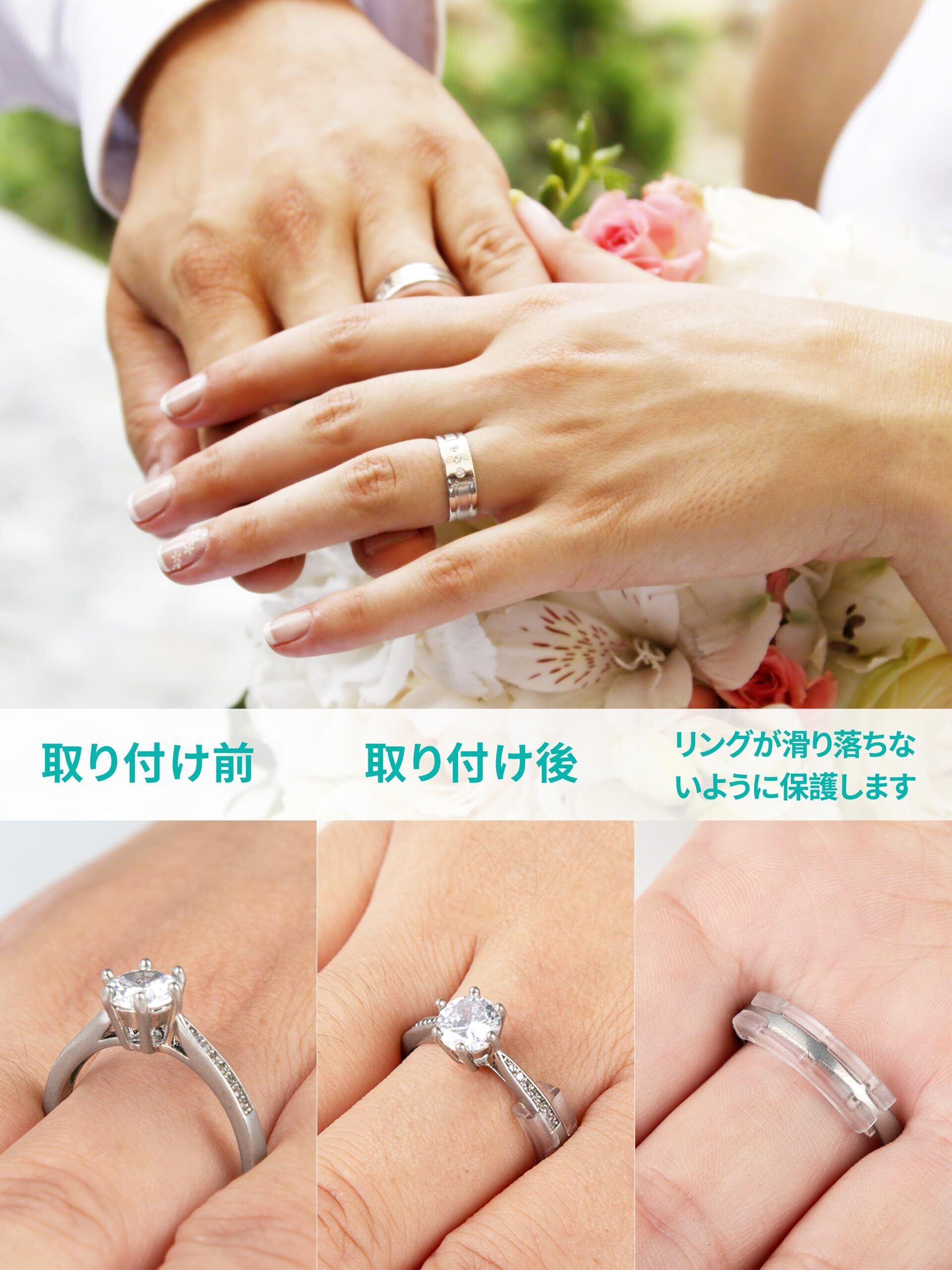 多用途 – この目立たないリングサイズリデューサーは、大きめの指輪のサイズを調整することができます。結婚指輪や婚約指輪をなくす心配をしていた方、減量しないと指にはまらない方にも最適です。