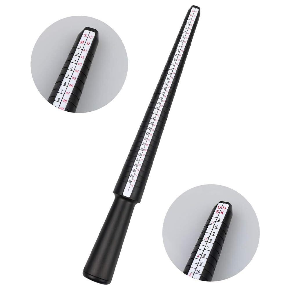 【在庫セール】指輪 サイズ 計測 リングゲージ リングゲージ棒 1本 (日)1~34 (米)2~15 (欧)41~76 (香港)3~34対応 プロ仕様 指輪 指輪 リング 溝付き 軽量 プラスチック 傷がつかない 4種測定 | 無意味ステッカー