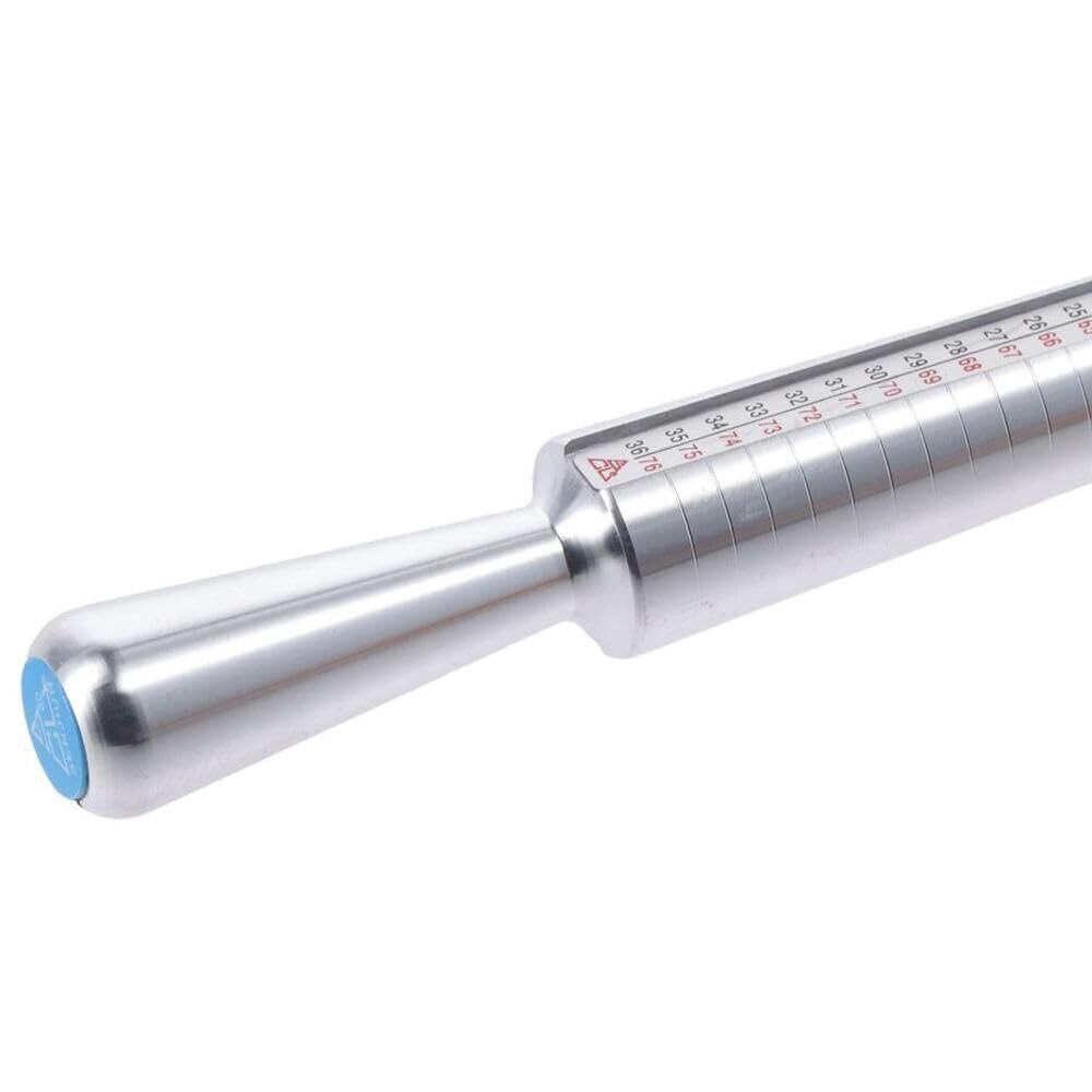 Ring Sizer Mandrelはアルミニウム材料から成っています。軽量で扱いやすい、ローリングリングスティックのデザインです。