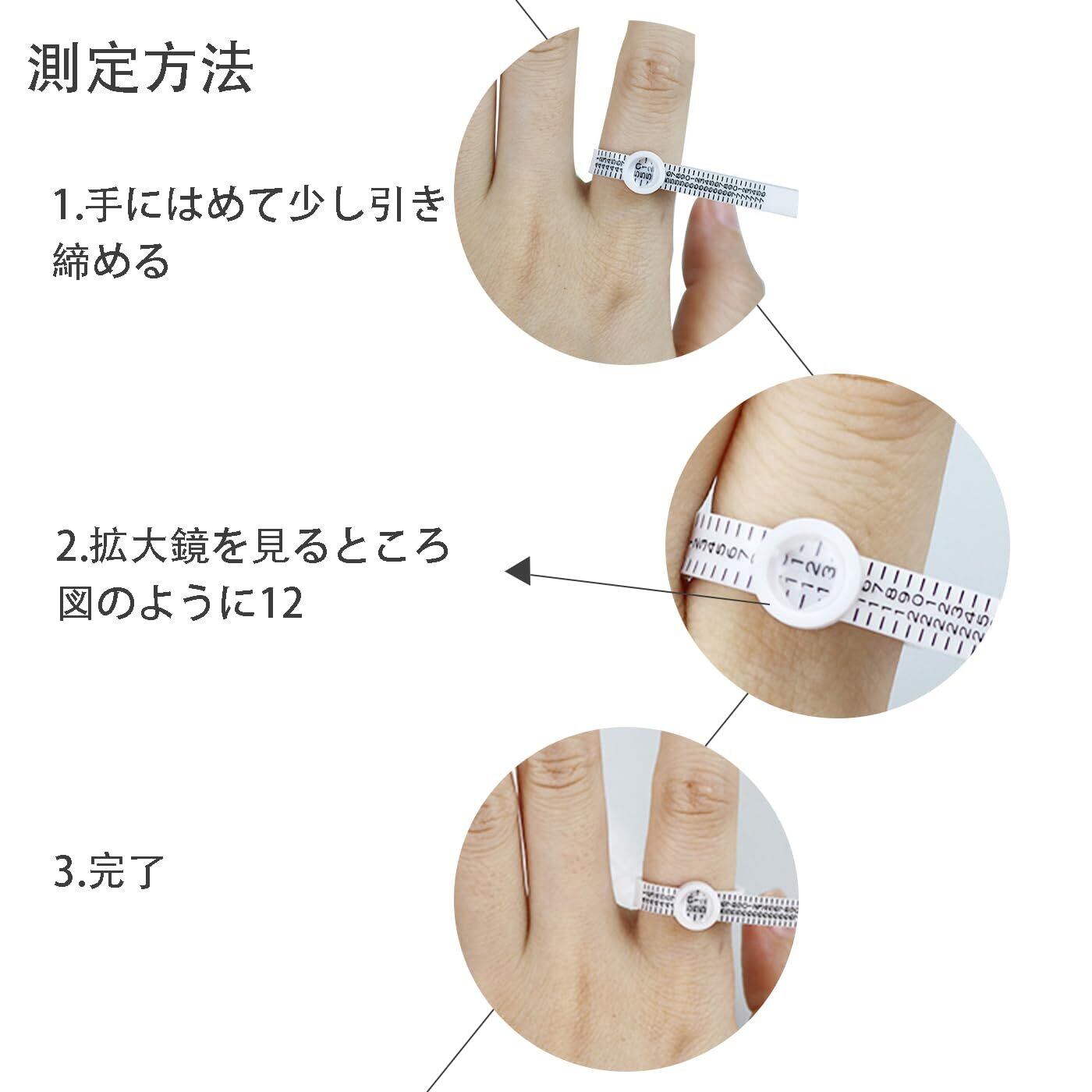 【使いやすい】:使用時には、測定器をベルトのように装着することができます。端をスナップリングに挿入してループを形成し、指に滑らせてフィットするように調整します。拡大鏡で簡単にサイズを読み取ることができます。