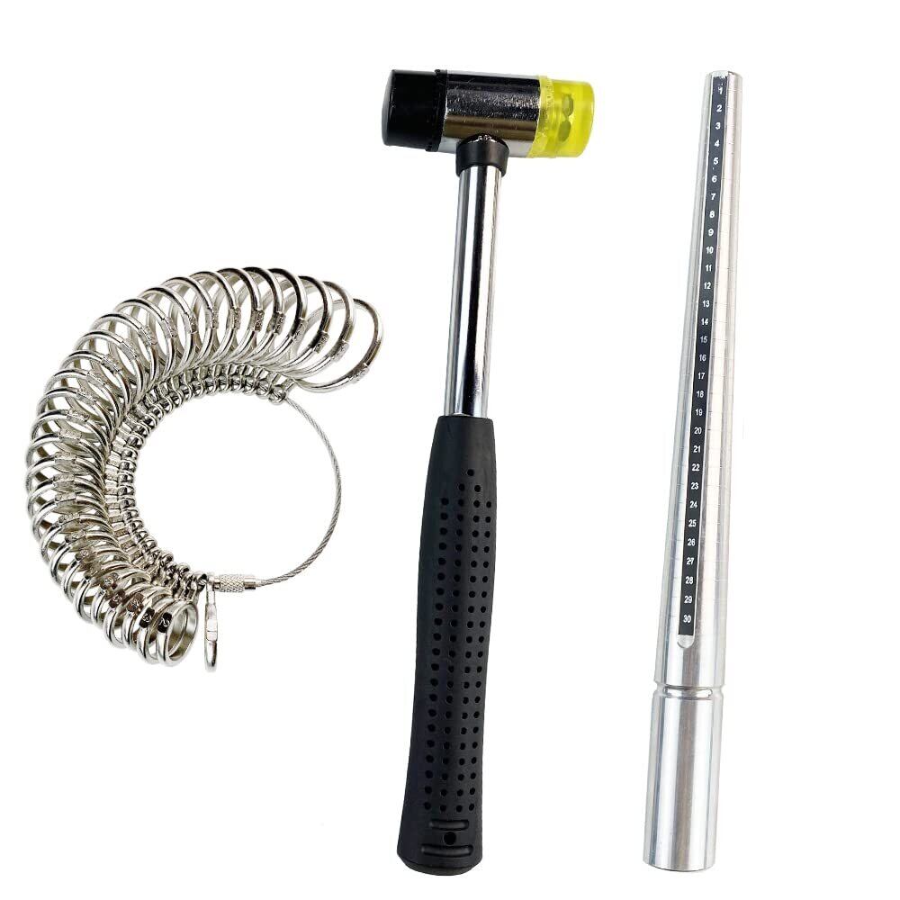 CNSTZBC 指輪 さいず 計測1号-30号対応 便利な リング 指輪 サイズ 調整 & コンビハンマー 補修ツール 3点 セット スチール ジュエリー用 工具 道具 プラチナ