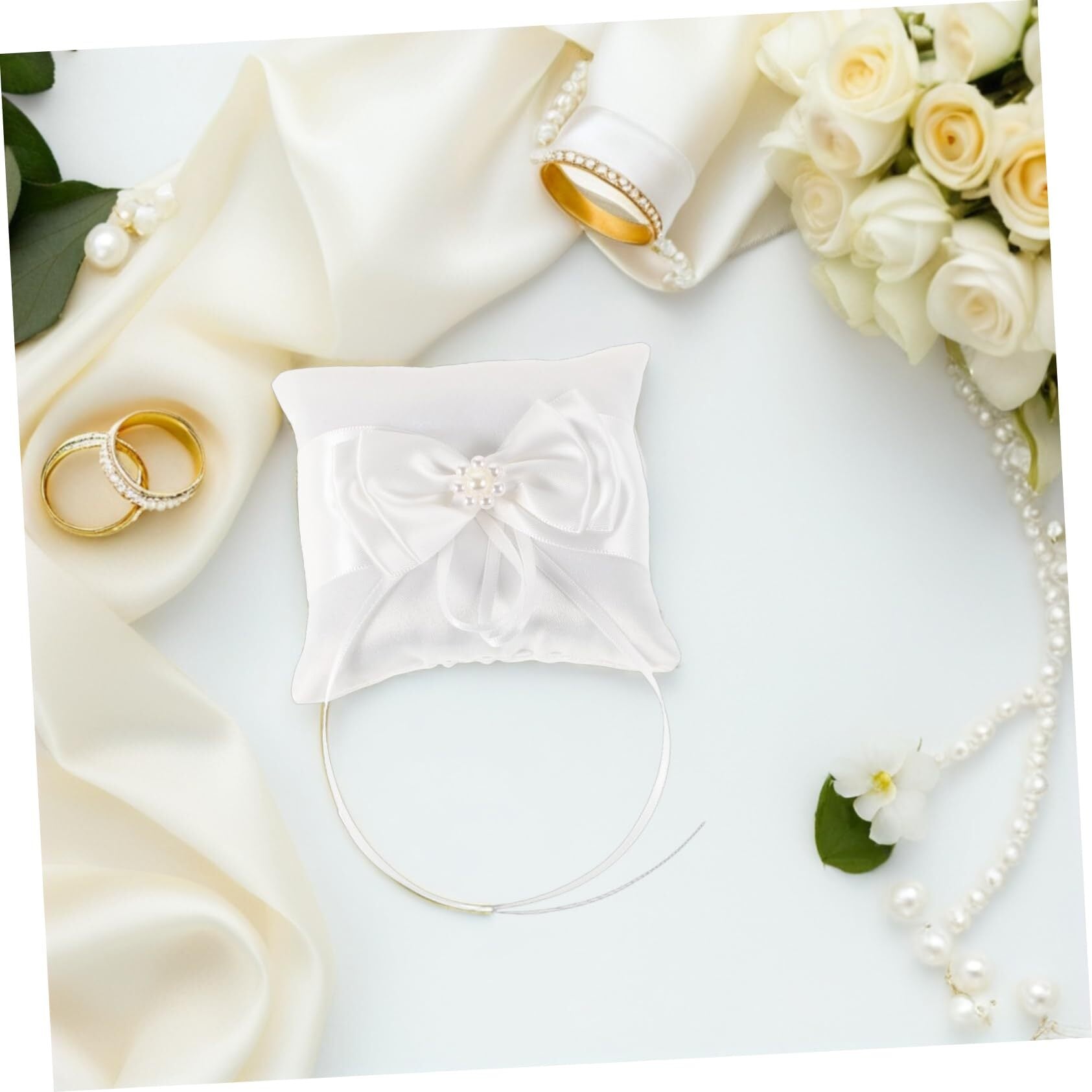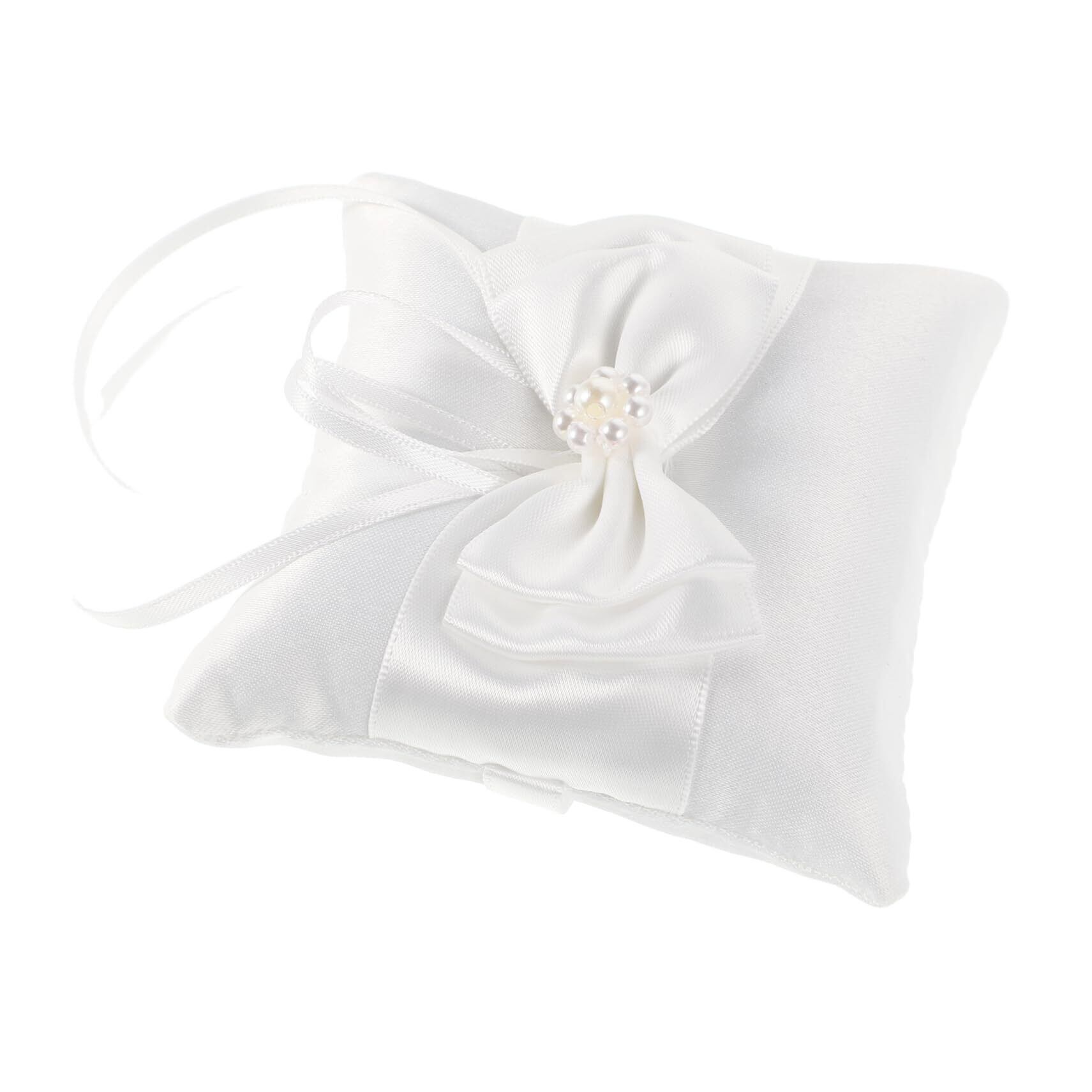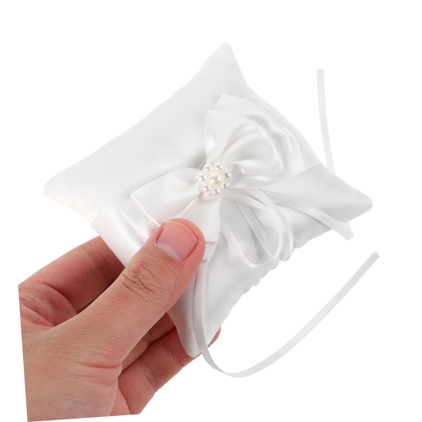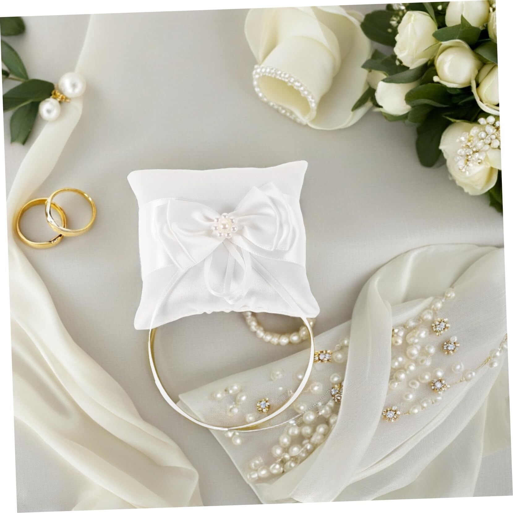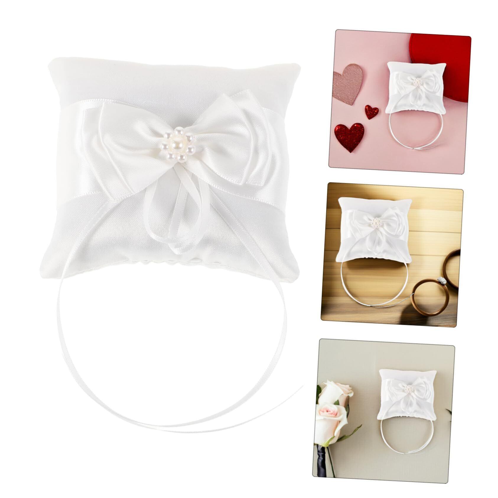 -丈夫な生地: 丈夫なサテンとポリエステルで作られたこのリングピローは、長持ちするように作られており、花嫁の結婚式のパーティーの記念品として大切に保管できます。