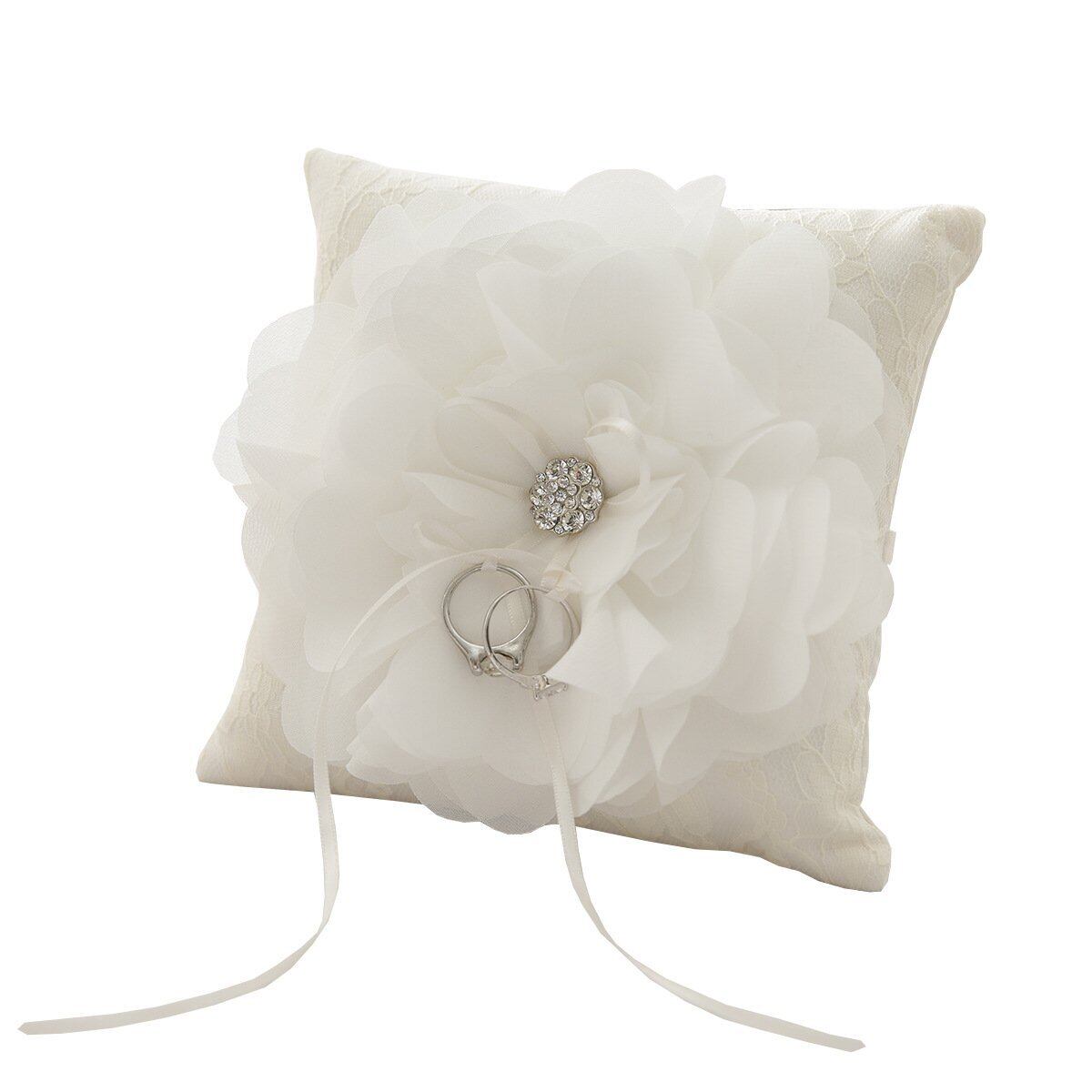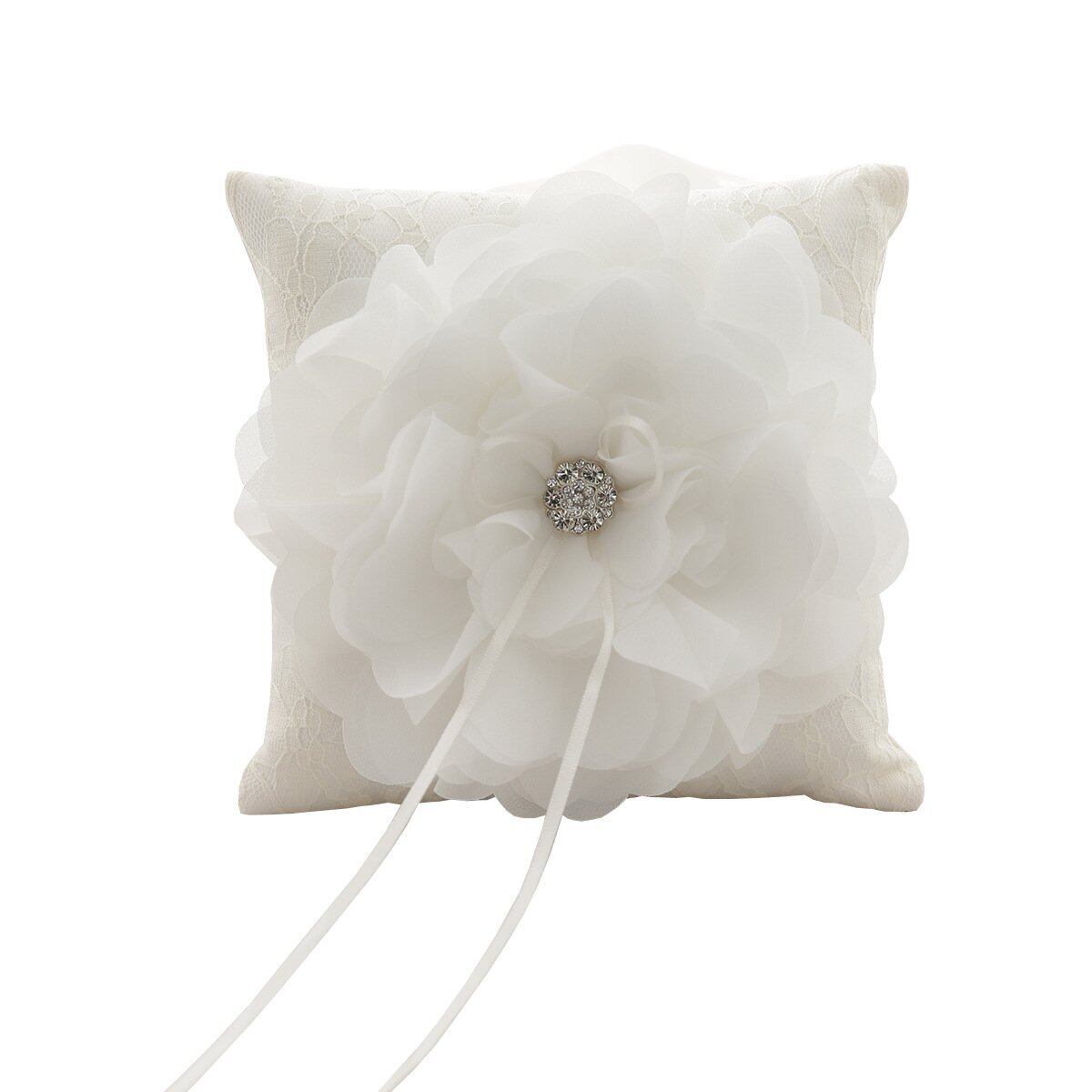 misakinoya リングピロー 完成品 ふわふわ シフォン フラワー リボン 指輪交換 リングピロー ウエディング 結婚式小物(15X15cmシフォンの花)