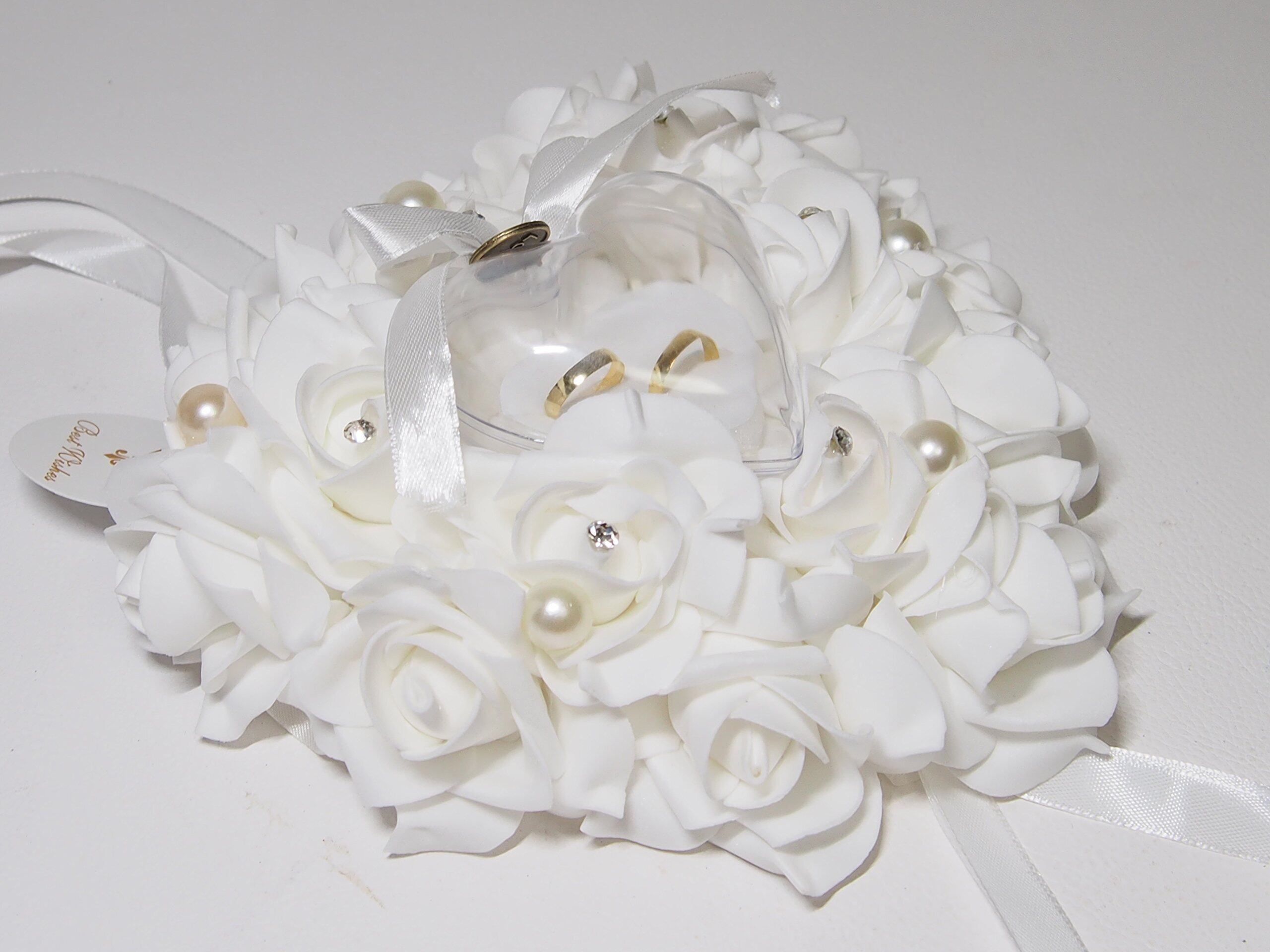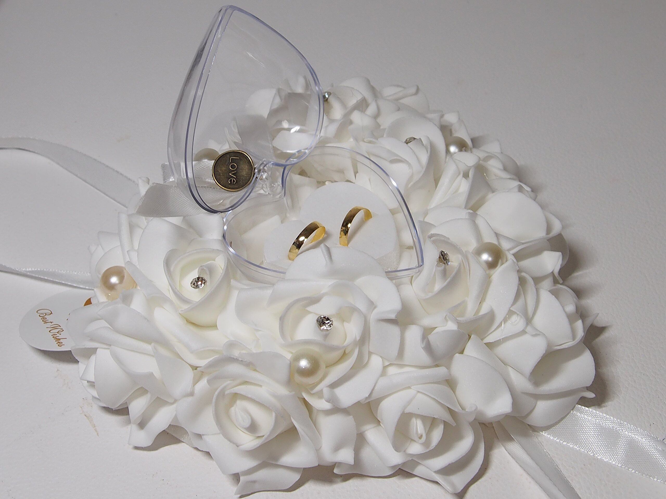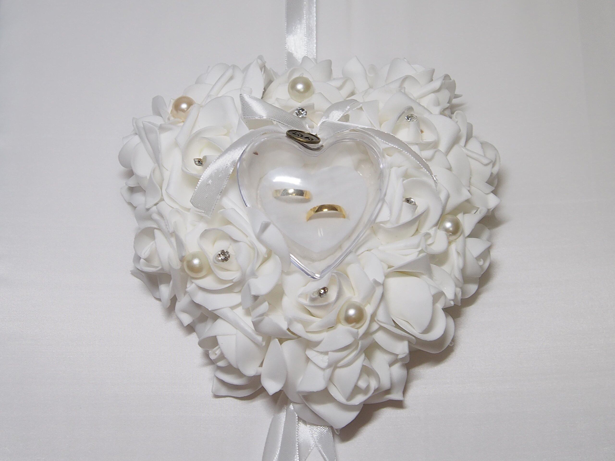 リングピロー 完成品 ハート ケーキ型 小 ウエディング ブライダル 結婚式 指輪ケース (ホワイト)