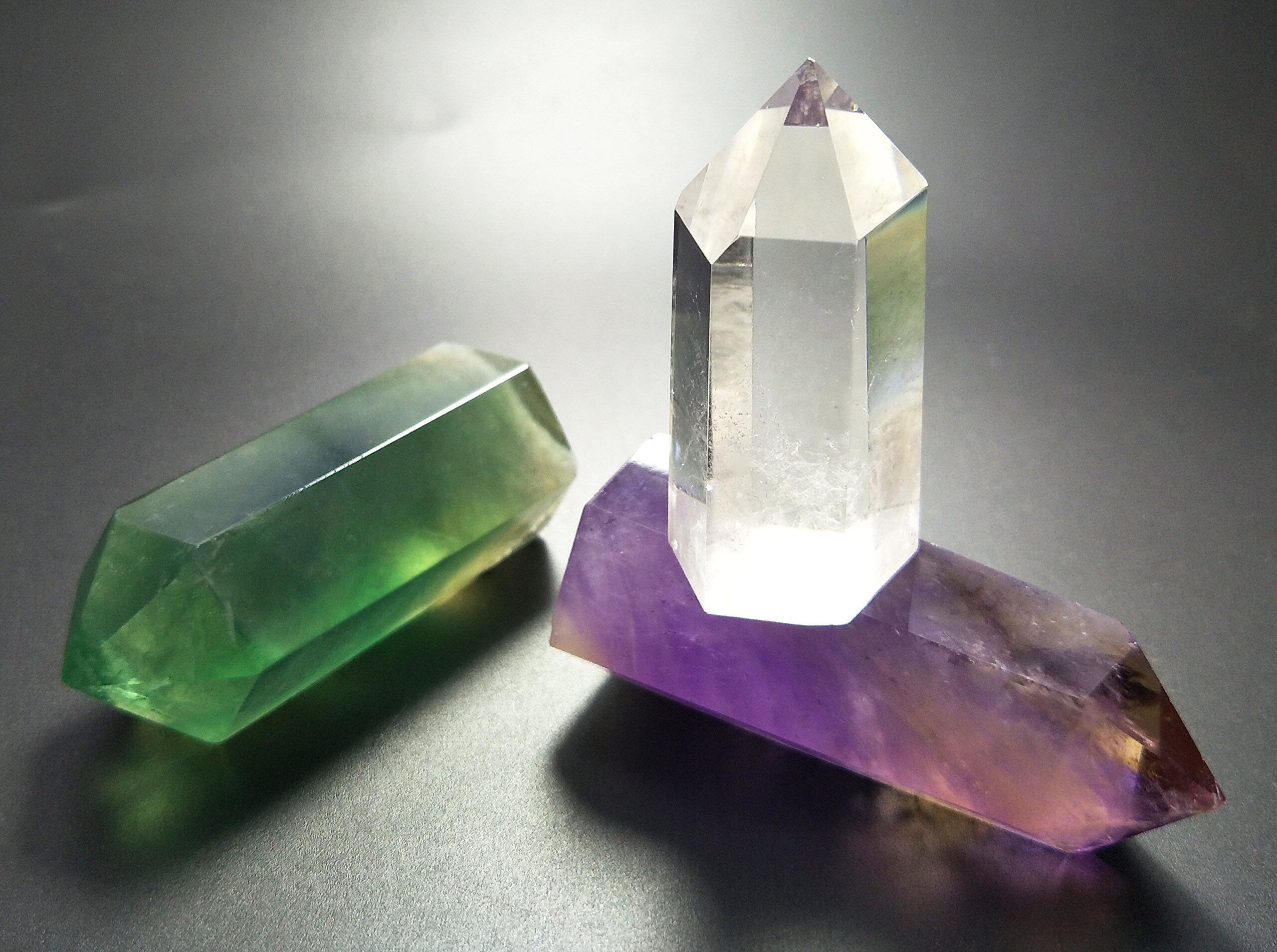 スタイル クリアクォーツ、アメジスト、蛍石。