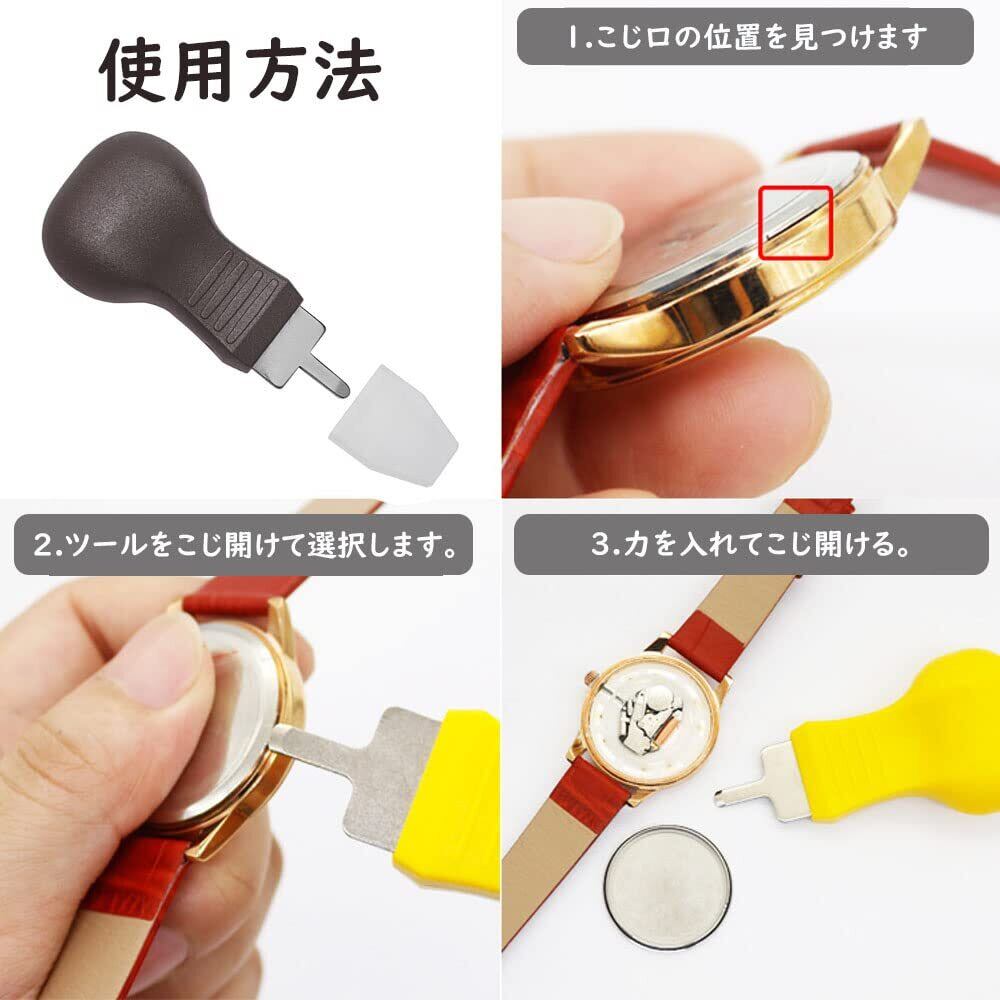 【使用方法】使い方は簡単で裏蓋の溝にスッと差込み開くだけ!1.こじ口の位置を見つけます。2.ツールをこじ開けて選択します。3.力を入れてこじ開ける。
