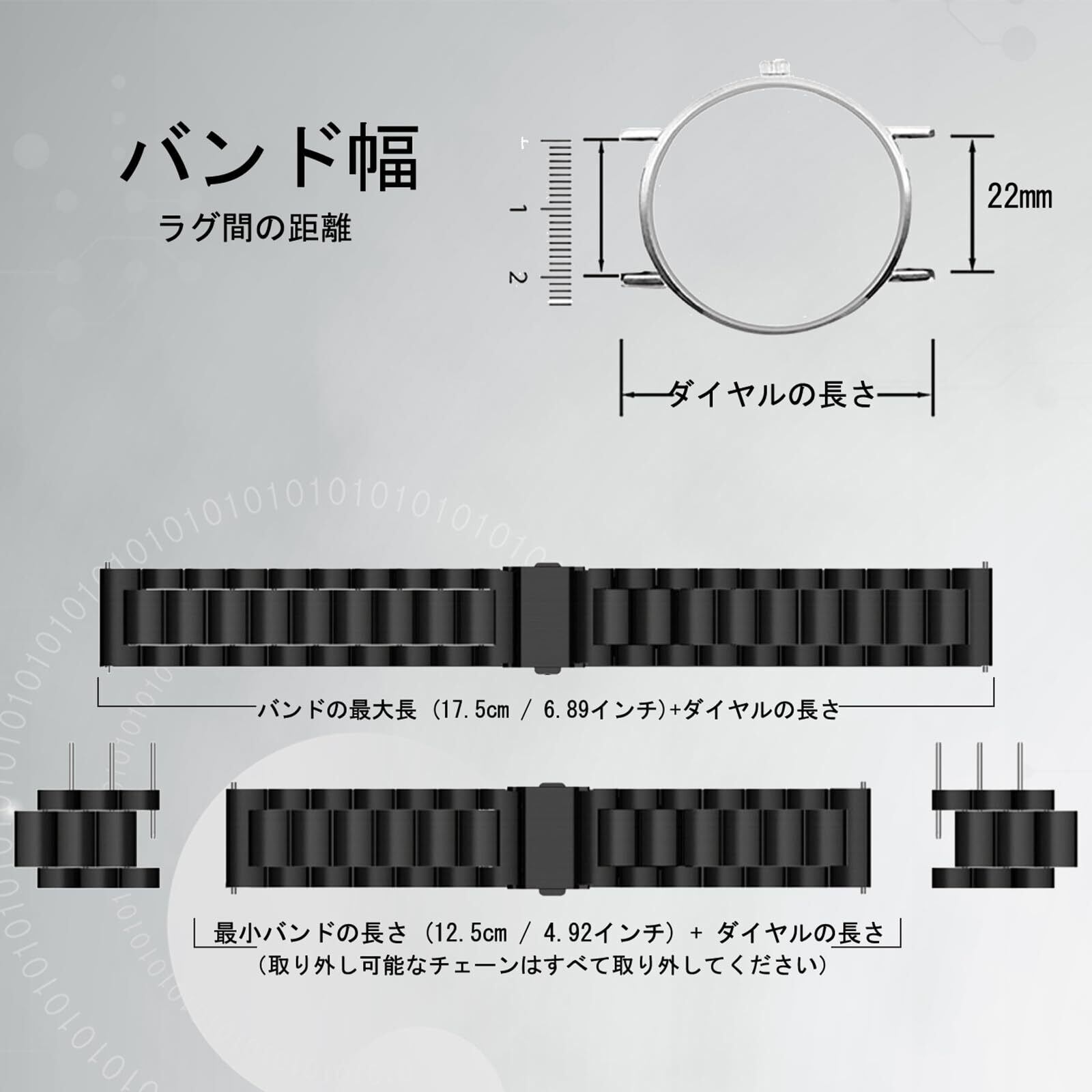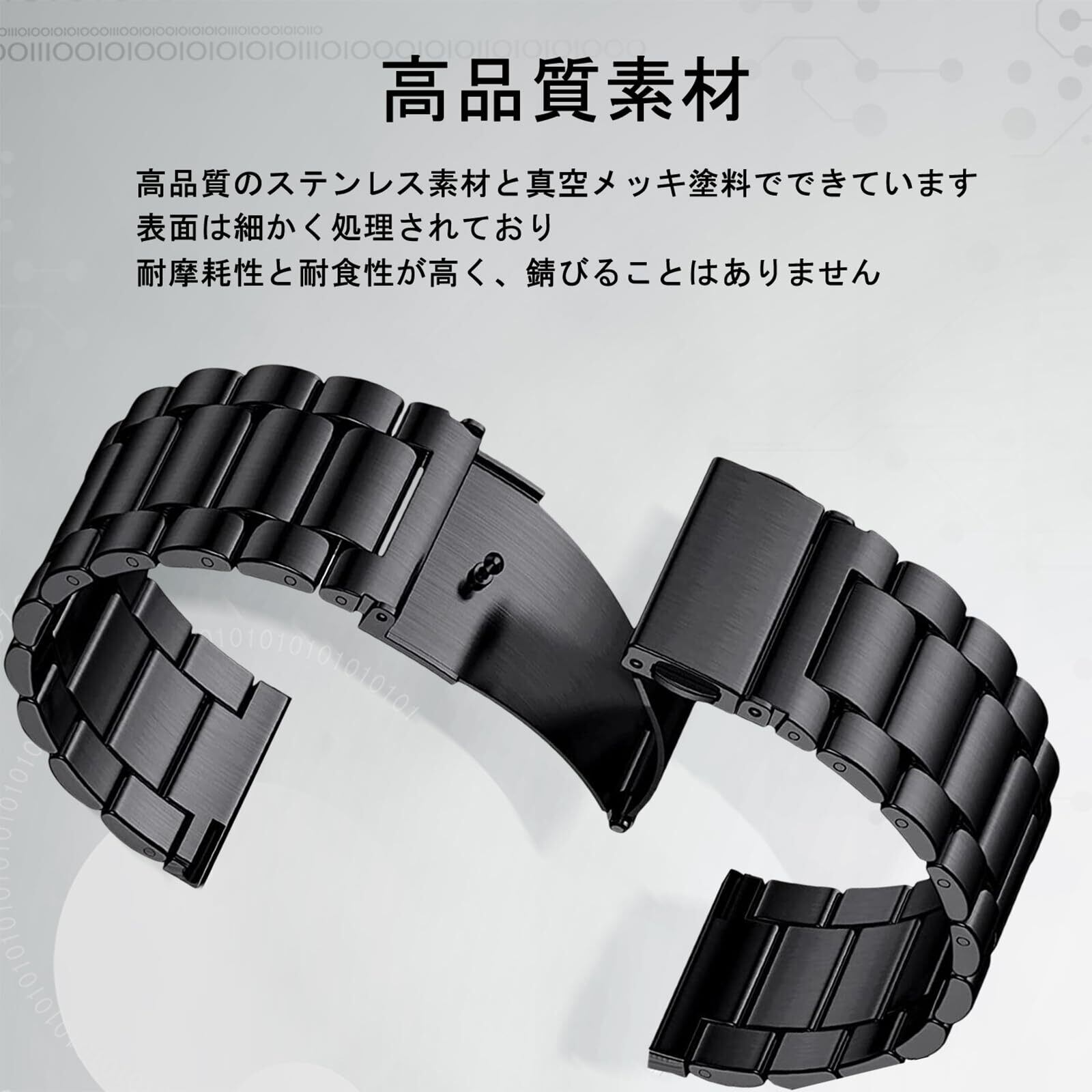 [LuFiYa] 時計バンド ベルト18mm / 20mm / 22mm / 24mm 交換バンド ステンレス 18ミリ 20ミリ 22ミリ 24ミリ 腕時計バンド 金属バンド ストラップ ビジネス風 交換ベルト調整工具付き 18mm / 20mm / 22mm / 24mm ベルト 【ブラック(22mm)】