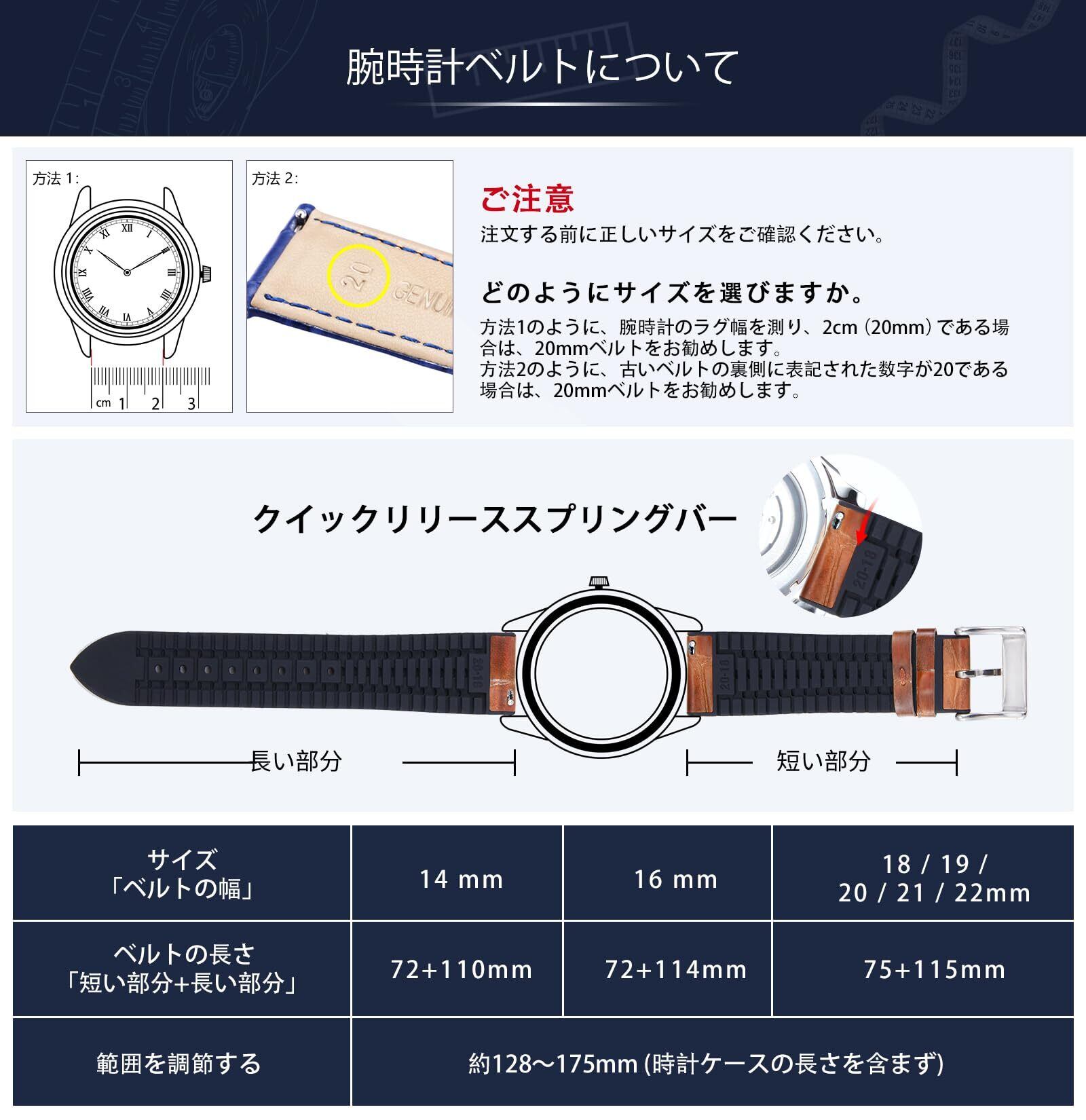 クイックリリース時計ベルト:19mmのレザー時計バンドは、128-175mmの間の手首をフィットします(ケースの長さは含まれていません)。ステンレス鋼のバックルを装備して、適切なベルトの長さに簡単に調整するのに役立ちます。アップグレードクイックリリース、時計ベルトをすばやく変更できます。