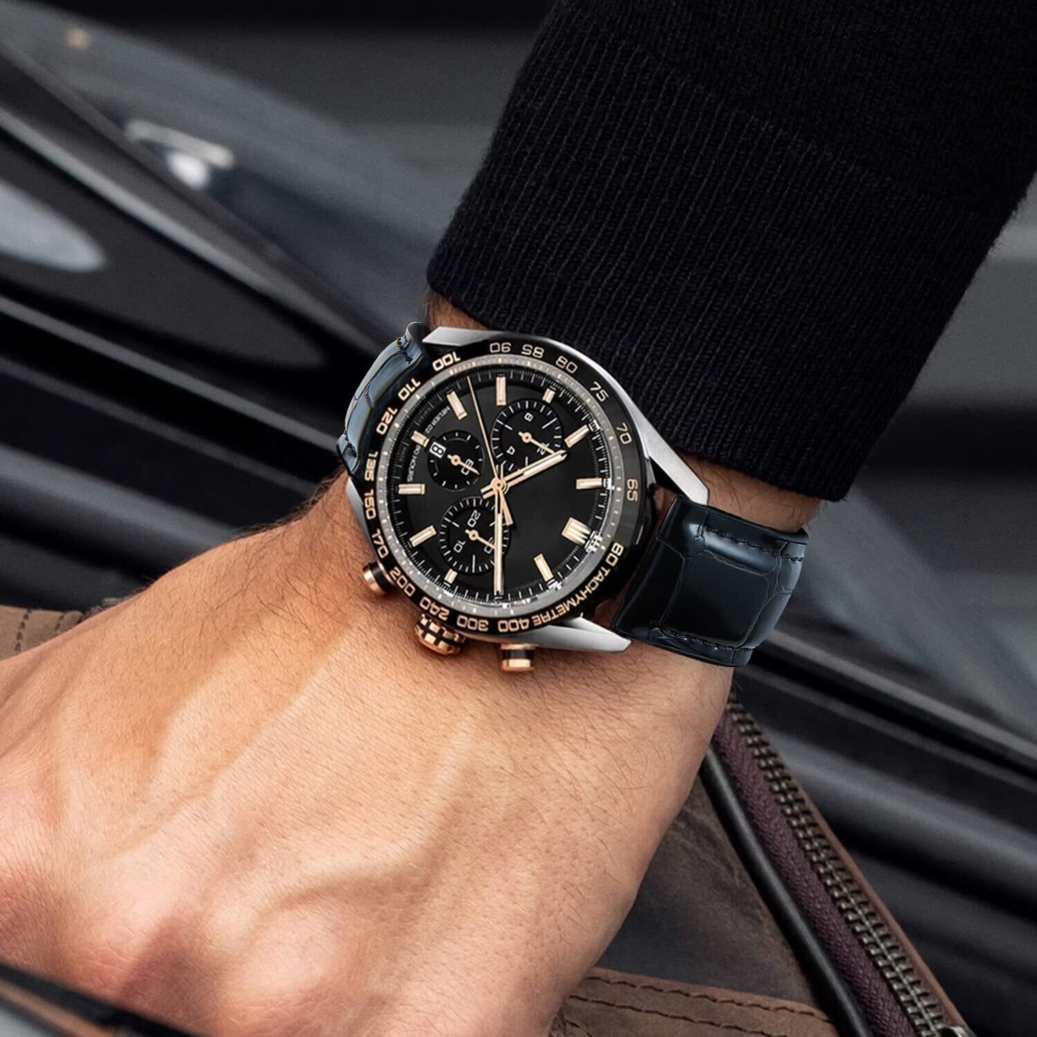 ユニークなデザイン:暑い日に革時計バンドが肌にくっつくのを防ぎ、ウォッチベルトの背面は、シリコンゴムを組み合わせています。通気性のある溝のデザイン、肌に呼吸するスペースを与え、ストラップの重量を軽減し、着用体験を向上させます