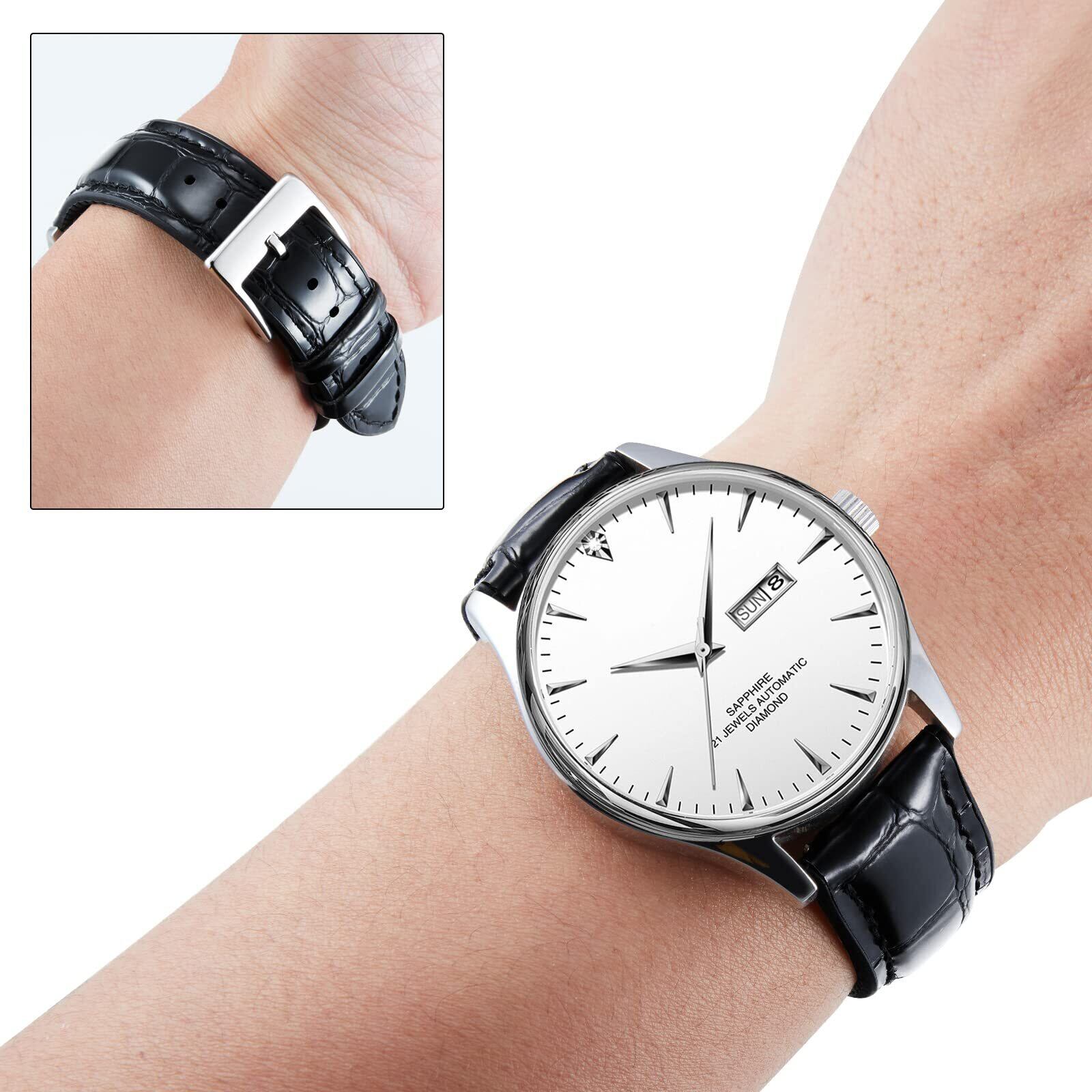高品質な革腕時計ベルト:バンドの外面はプレミアムレザーで作られています、古典的なワニ革のパターンと光沢を伴う、あなたの時計を特別でファッショナブルにします。あなたが選択できるように、ストラップとバックルの複数の色を提供します