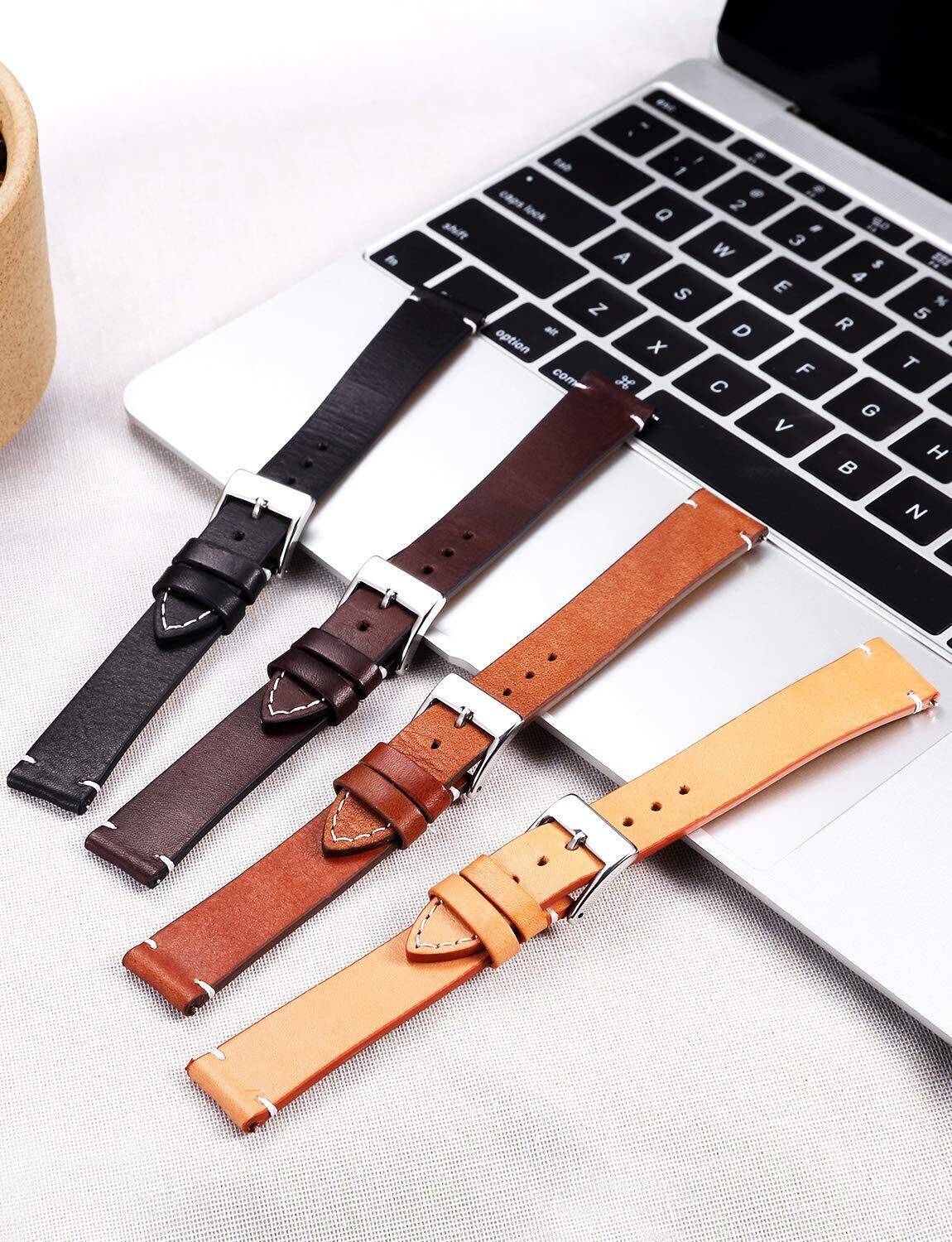 [BINLUN] 本革時計バンド クイックリリース レザー腕時計ベルト メンズ レディース 交換用ウォッチストラップ 男女兼用 12mm 14mm 16mm 18mm 20mm 22mm 24mm 4色(オレンジ/ブラック/ブラウン/ライトブラウン)