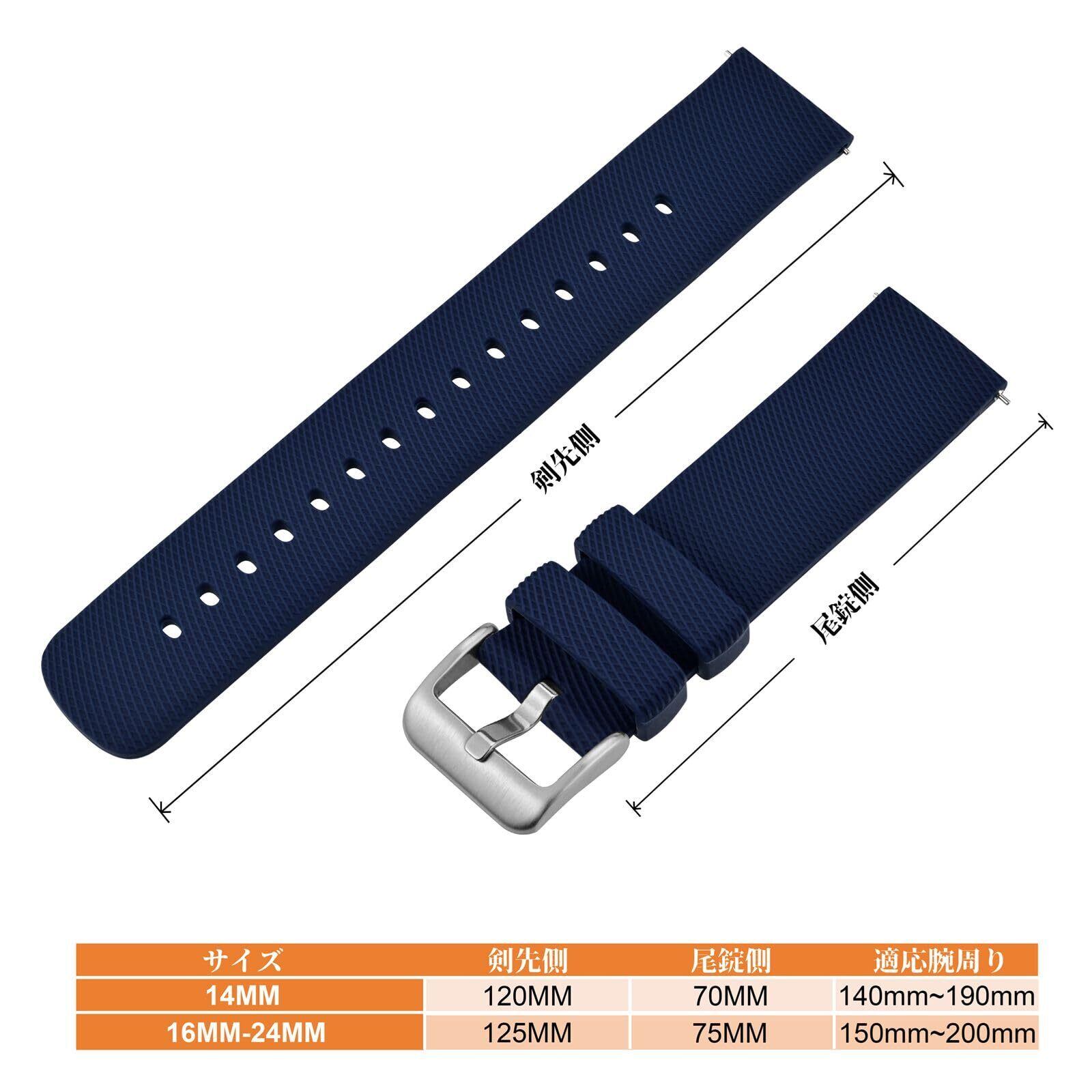 [ANNEFIT] シリコン時計バンド 14mm~24mm ラバー腕時計替えベルト Quick Release