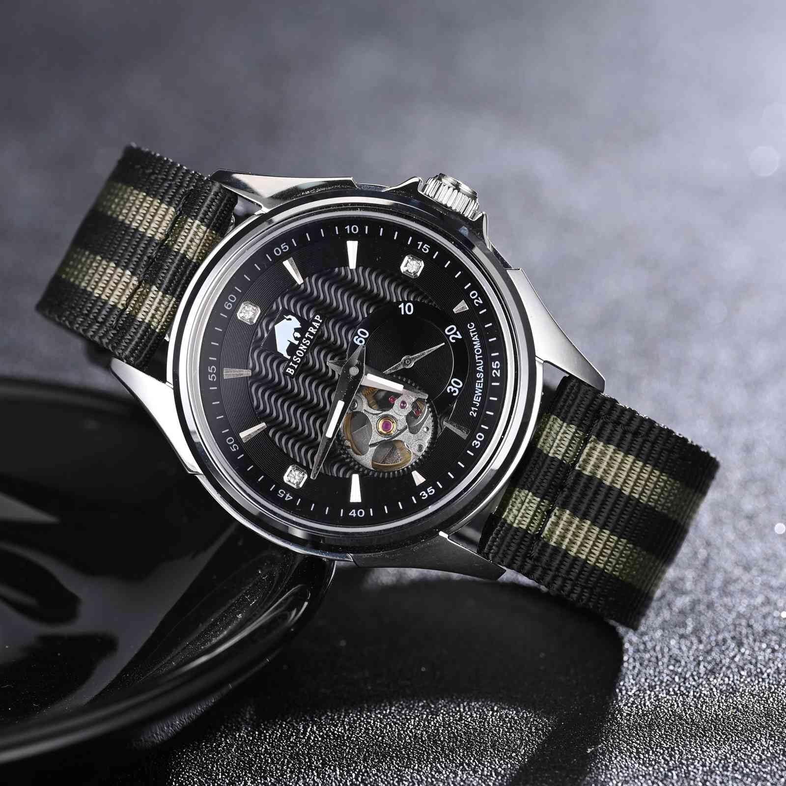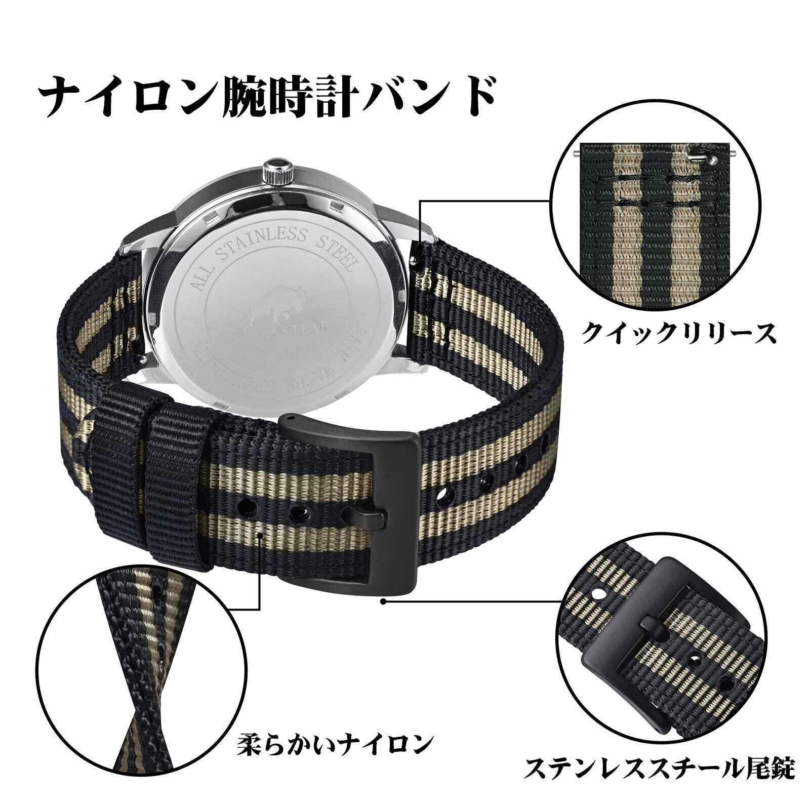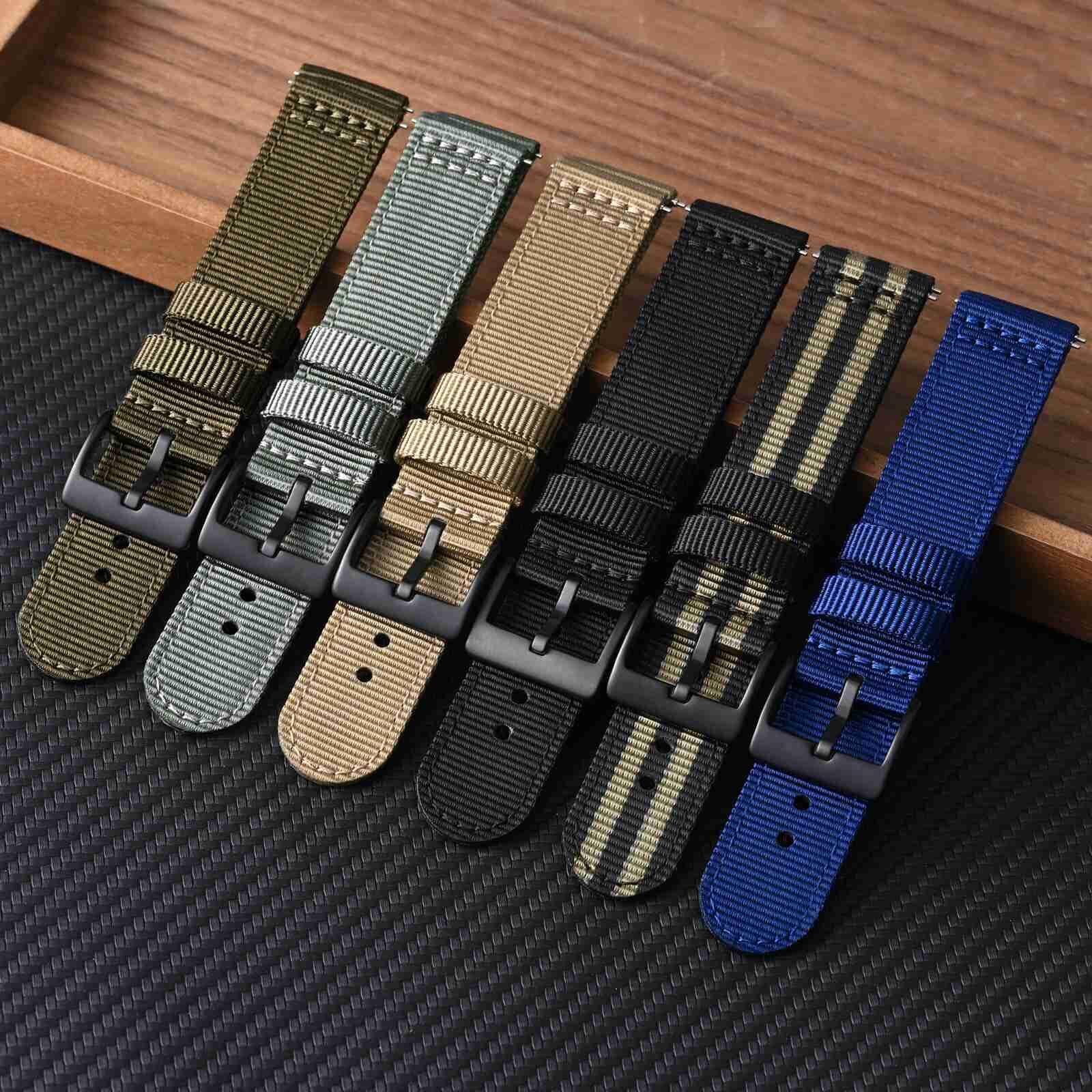 [BISONSTRAP] ナイロン時計バンド ツーピース・ミリタリー腕時計バンド ブラッシュド尾錠 Quick Release 18mm 19mm 20mm 22mm交換ベルト 男性用