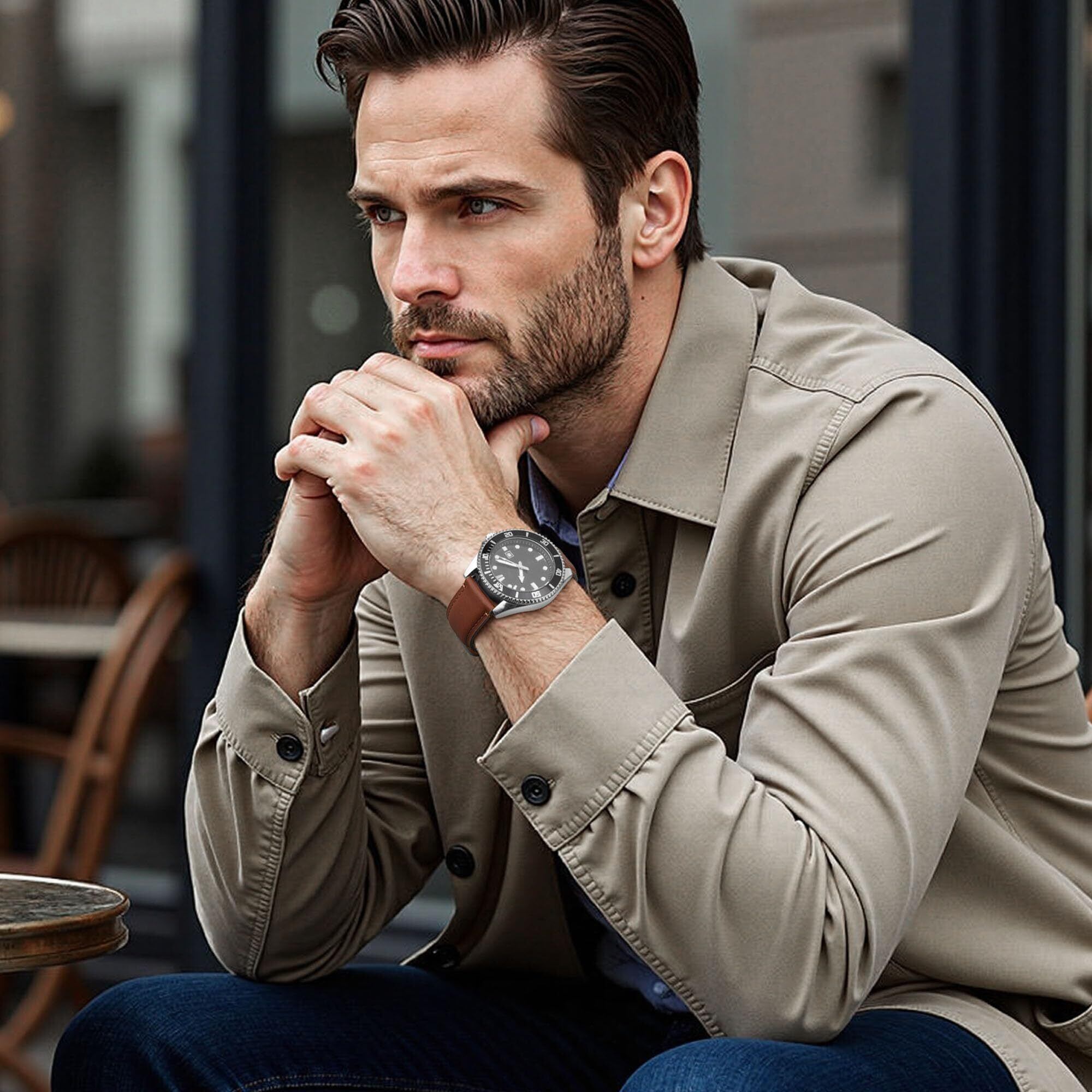 【上質な本革腕時計バンド】フルグレインレザーと理想的なコンフォート— 316ステンレス鋼のバックル。ポリッシュとブラッシングプロセスを組み合わせ、クラシックな外観を保ちます。処理された下側(ソフトカーフレザー)は肌に対して非常に柔らかく、滑りを最小限に抑えながら理想的な快適さを提供します。