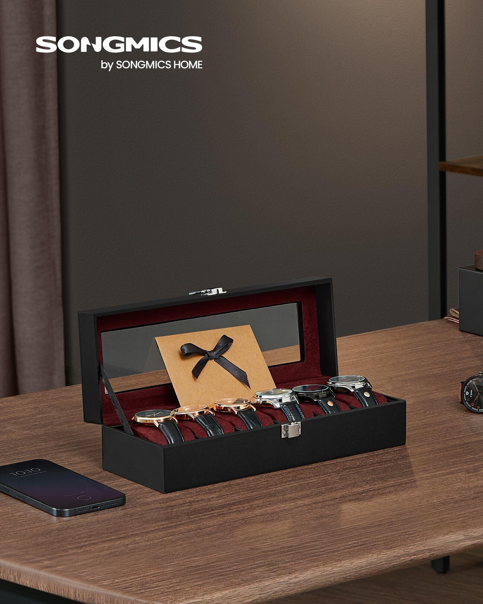 SONGMICS 時計ケース 6本 PU製 腕時計収納 コレクションケース 透明窓付き ウォッチボックス アクセサリー保管 おしゃれ 父の日プレゼント メンズ レディース 誕生日お祝いギフト ブラック JWB006R01