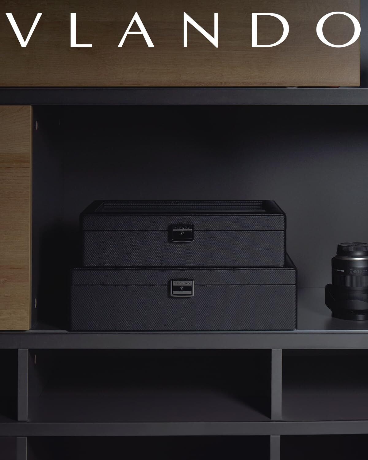 精巧な作工 - Vlandoの時計ケースは、質の高い細菌皮革と皮革の内側を使用して作成されており、整いの良いステッチングと高品質のロック(鍵を含む)を特徴としています。ロック可能な時計ボックスオーガナイザーは堅牢で耐久性があり、貴重品を安全に保管します。