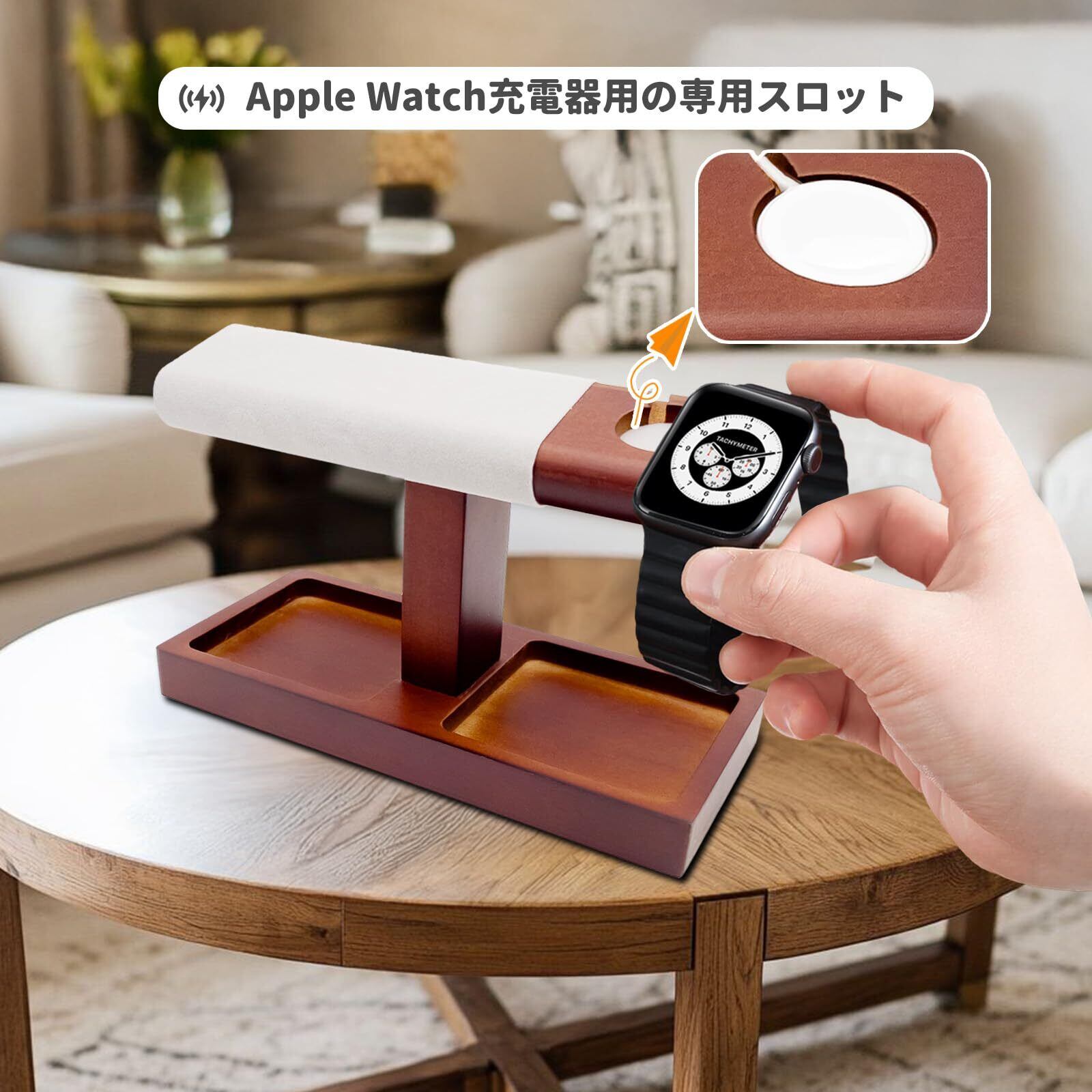 充電機能:Apple Watchワイヤレス充電器を安全に配置でき、充電に便利な溝が付いています。