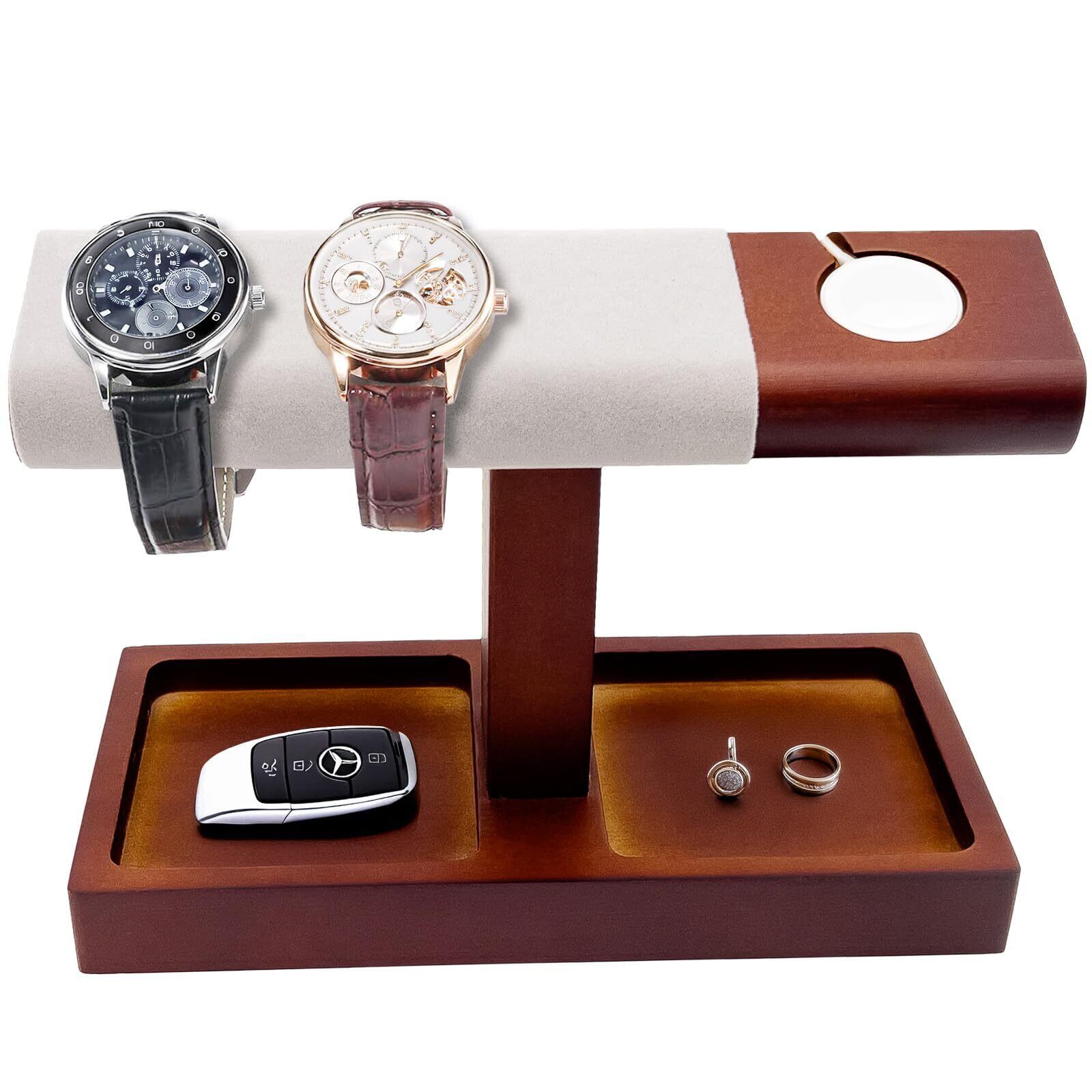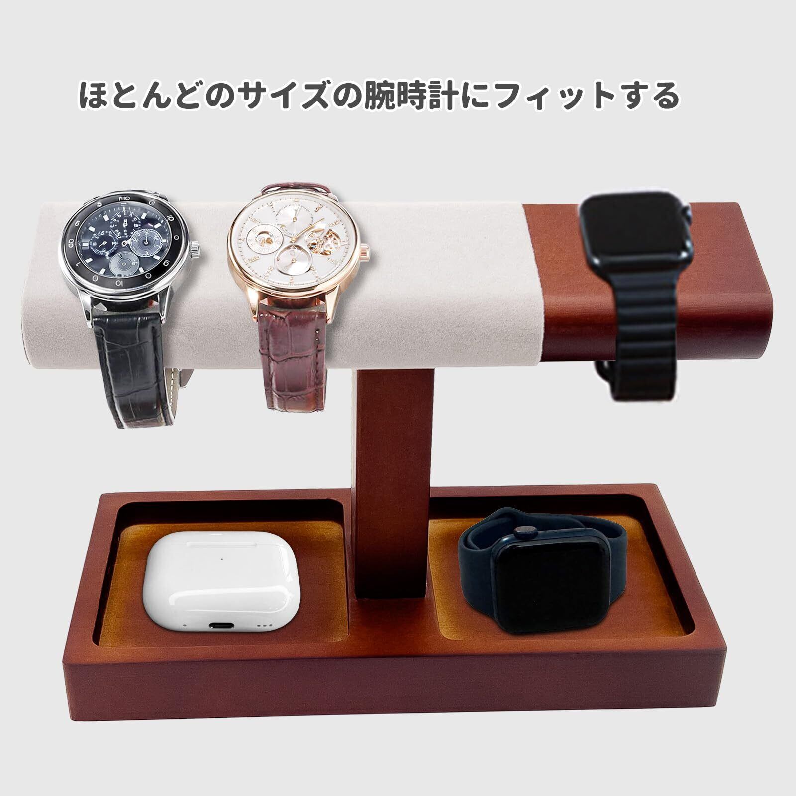 Mocamoro 腕時計スタンド 4本用 ウォッチスタンド T型 メンズ 高級な時計収納 男性用 時計コレクション ディスプレイスタンド 贈り物 おしゃれ プレゼント(1段・ブラウン)