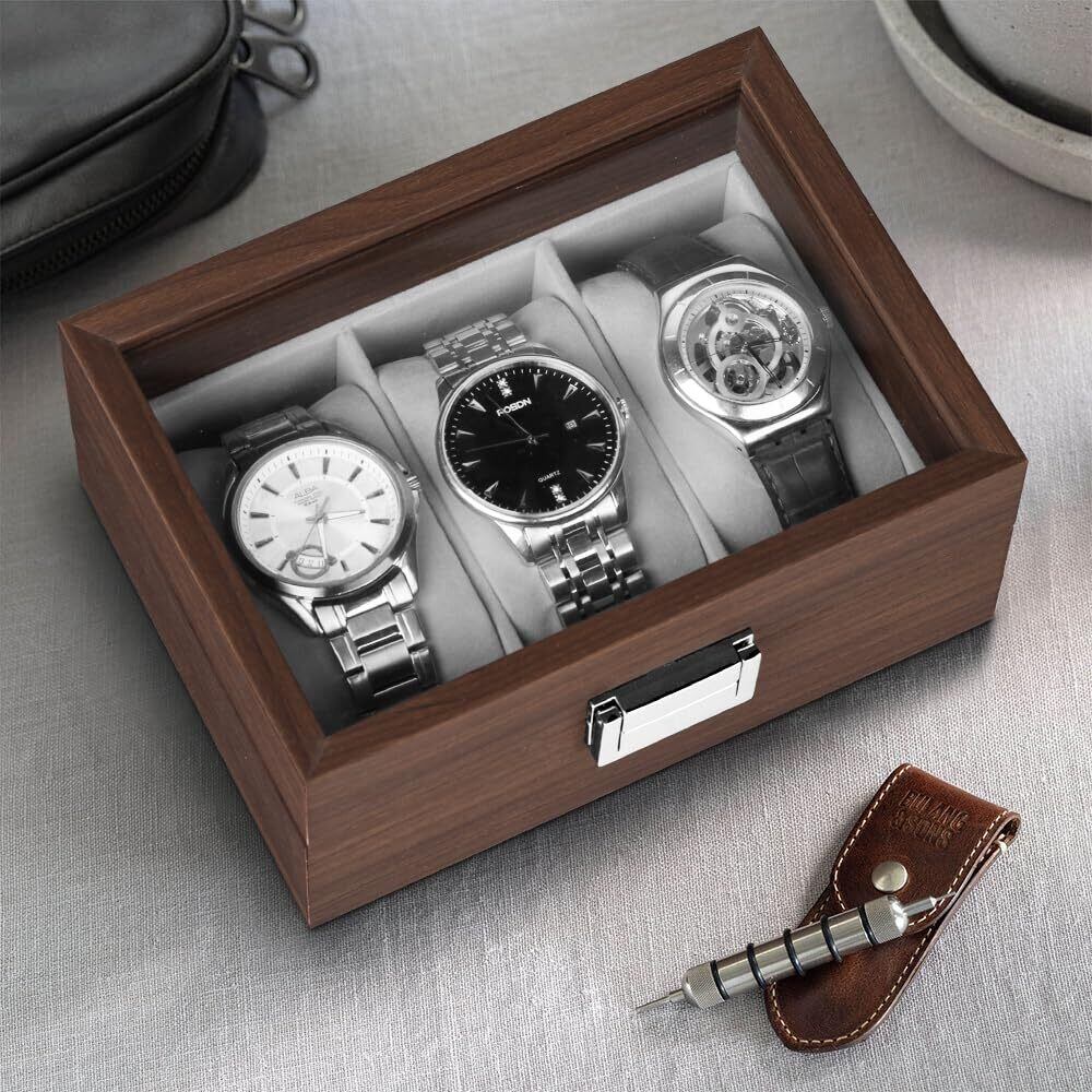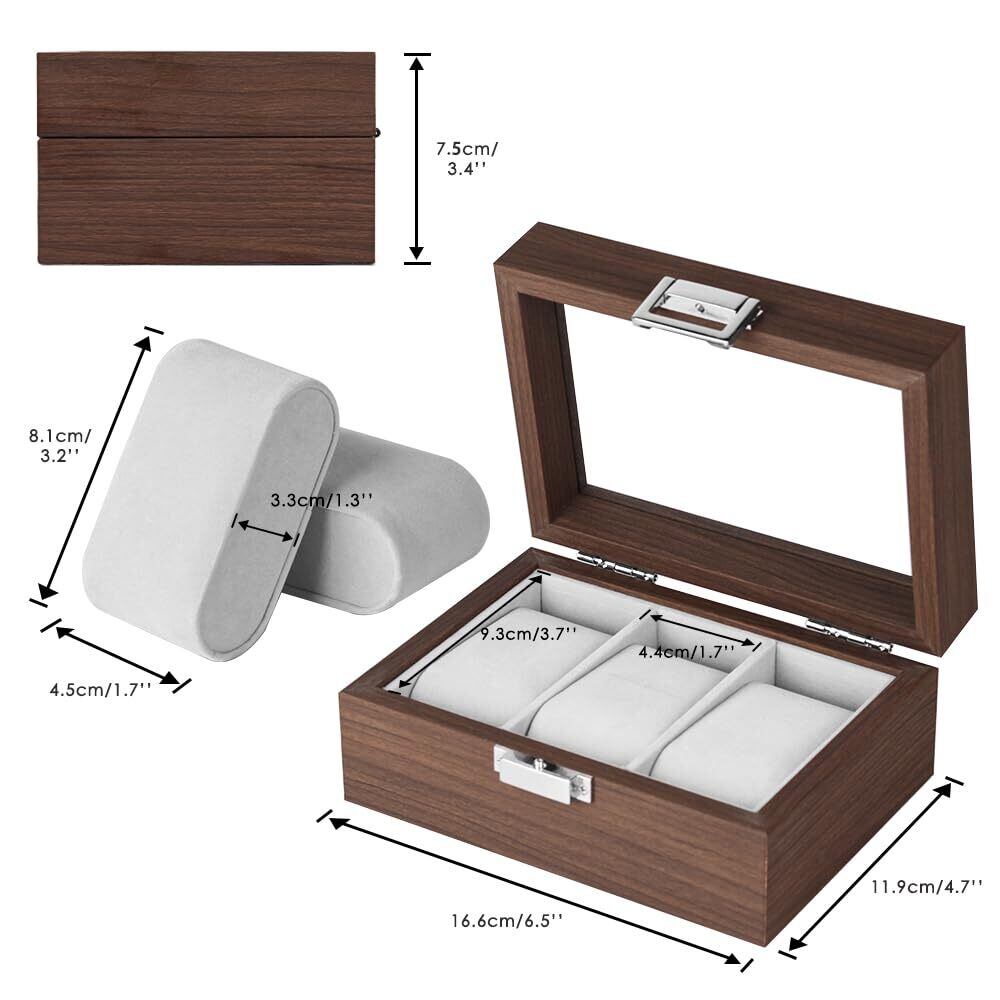 Baskiss 木製時計ケース 腕時計収納ボックス コレクションケース ウォッチボックス 高級 時計ディスプレイ (3本)
