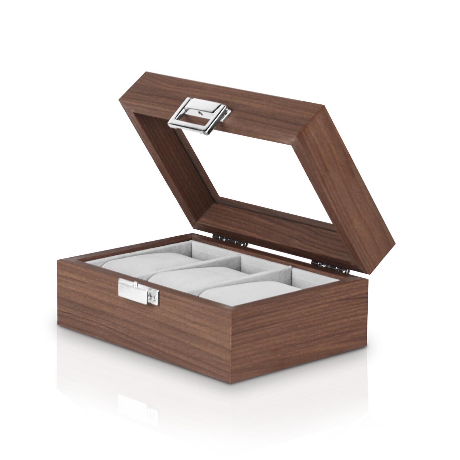 落ち着いた色味の木製収納ケースは大切な腕時計コレクションに相応しい安心感を与えます。シンプルですが、機能的なデザインは深さと直線にこだわり、上品と高級感を与えます。