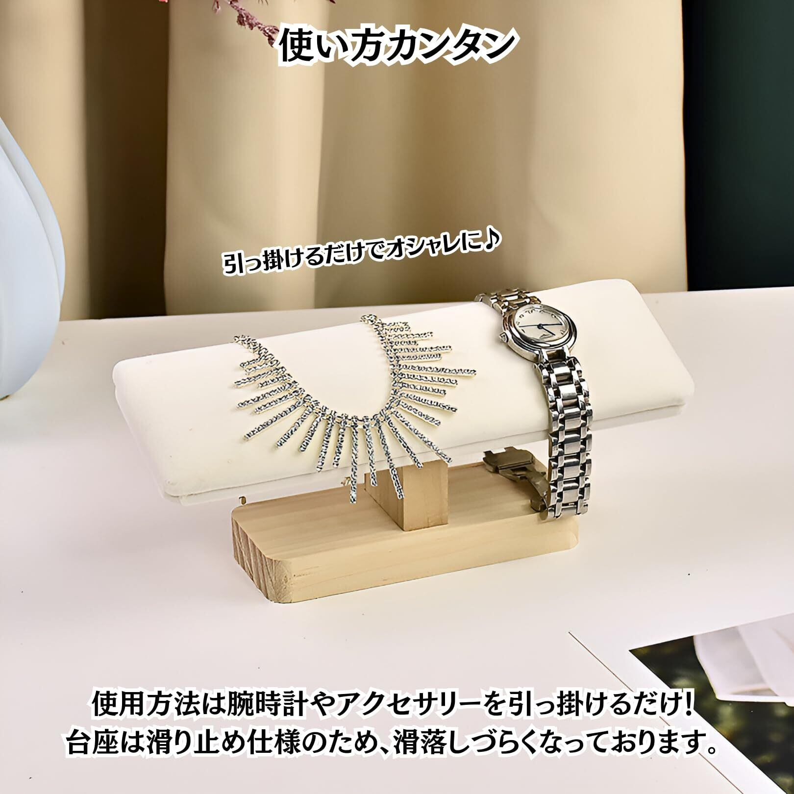 【使い方カンタン】使用方法は腕時計を引っ掛けるだけ!滑り止めのクッションにより、時計が滑落する心配がありません。最大で4本まで収納可能で、アクセサリーやネックレス、ブレスレットなどにもご利用頂けます。