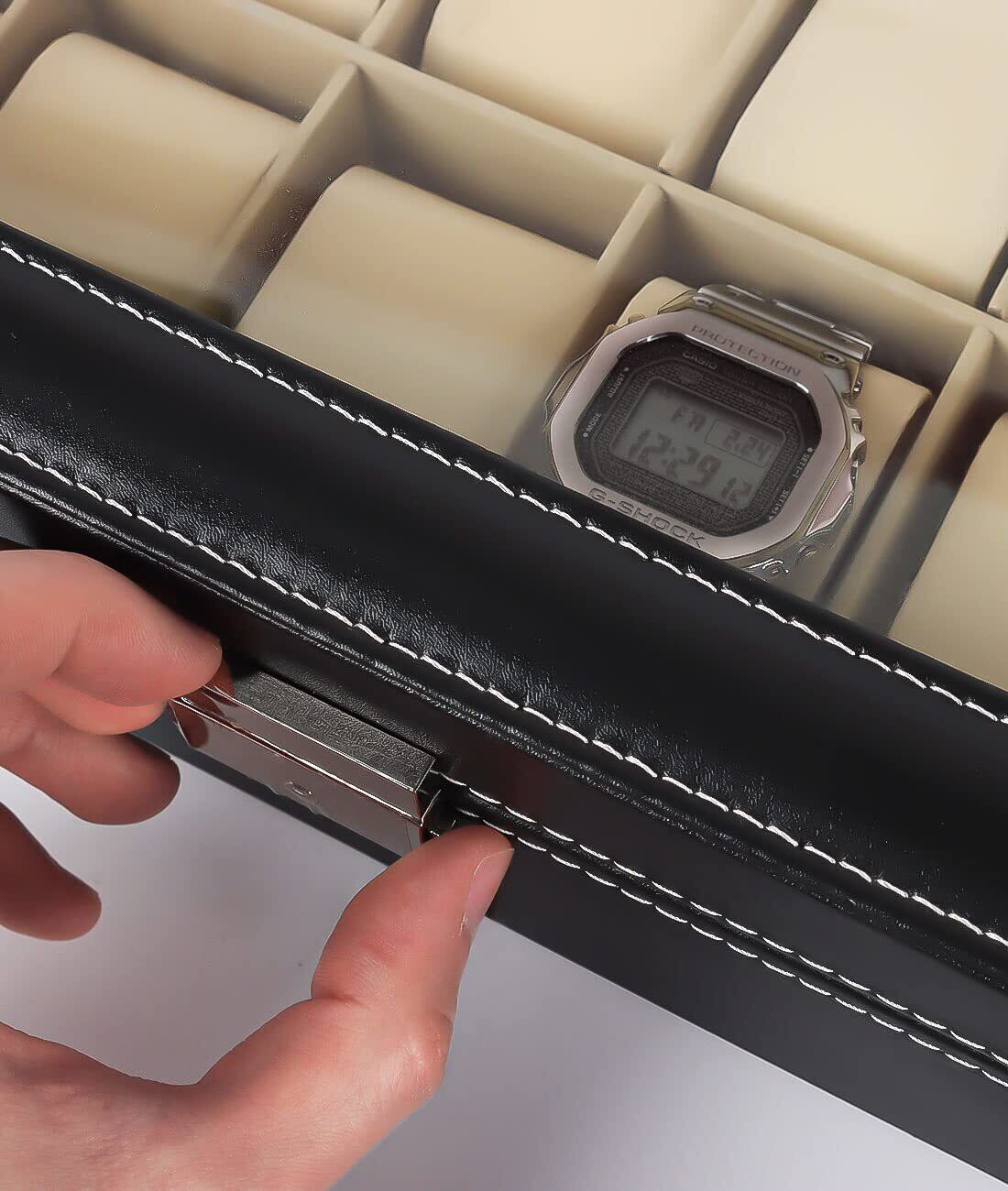【高級感あり】落ち着いた色味の収納ケースは大切な腕時計コレクションに相応しい安心感を与えます。シンプルですが、機能的なデザインは深さと直線にこだわり、上品と高級感を与えます。