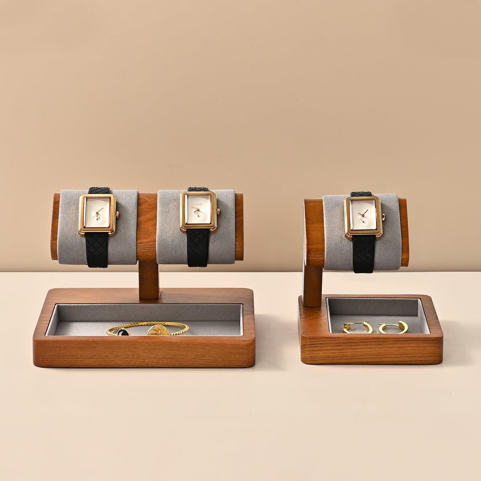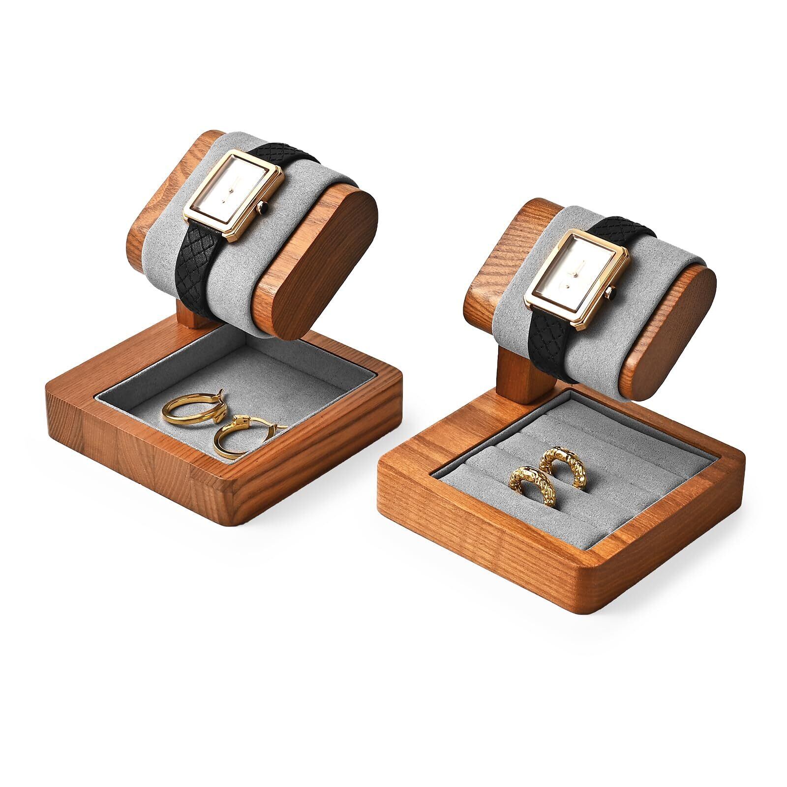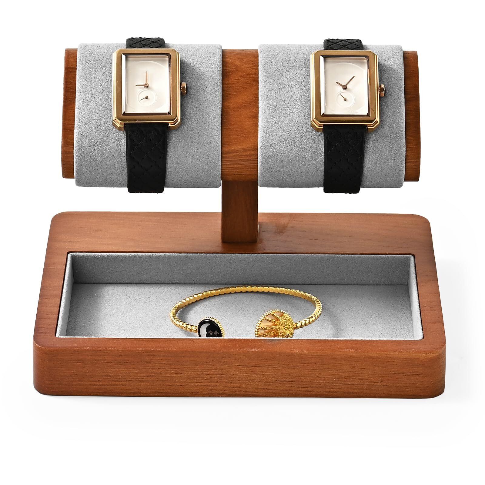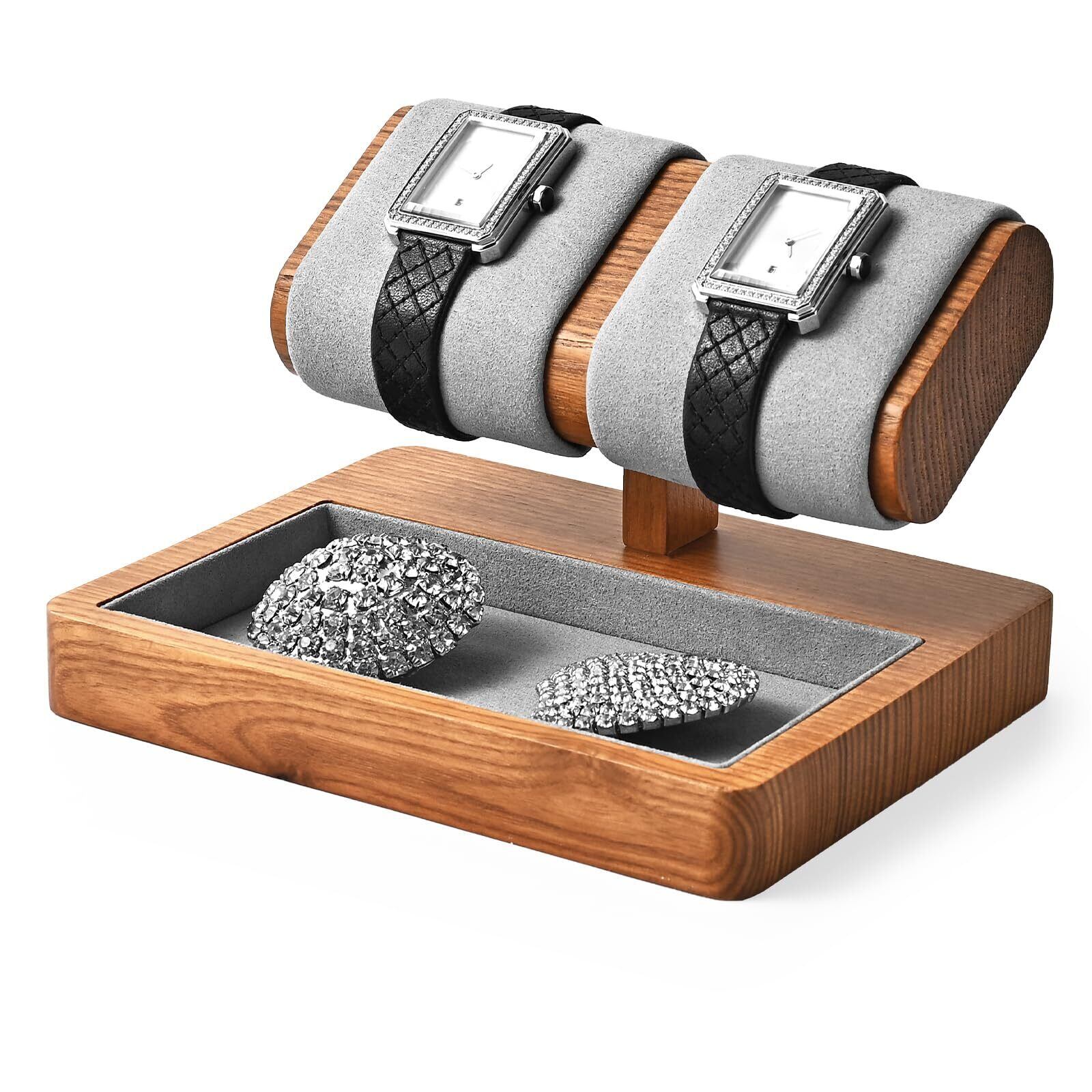 Oirlv 時計スタンド 2本 腕時計 スタンド 木製 持ち運び ディスプレイ 収納 撮影 高級 おしゃれ 適格請求書に対応 SM23602 (グレー)