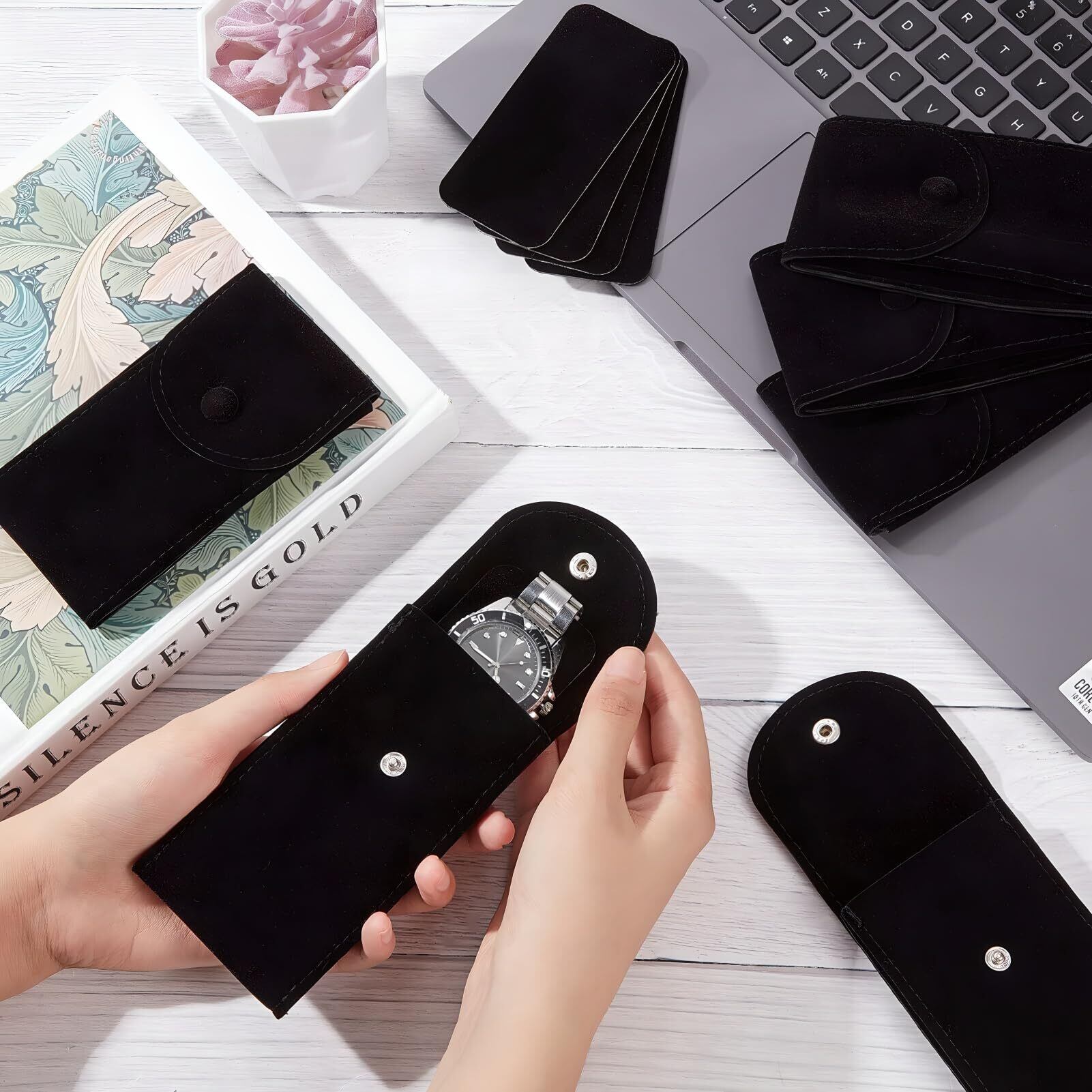 高品質素材:腕時計ケース上質な厚手のベルベット素材を採用し、大切な時計を優しく包み込みます。取り出すたびに感じる滑らかな手触りは豪華で、長期間使用しても変形しません,ステンレス製ストラップからレザーストラップまで、あらゆる細かな傷を優雅に守ります
