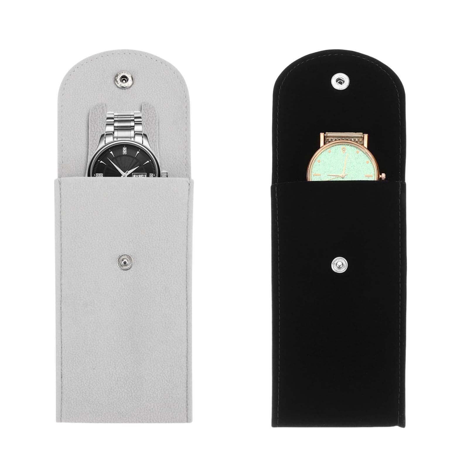 「Vibrly」腕時計ケース 2本用 【ベルベット製 衝撃吸収】 携帯用 時計ポーチ 中芯ボード 内蔵 傷付き防止 13x7.5x0.8cm トラベル 出張 ウォッチケース 男女兼用 (ブラック+グレー)