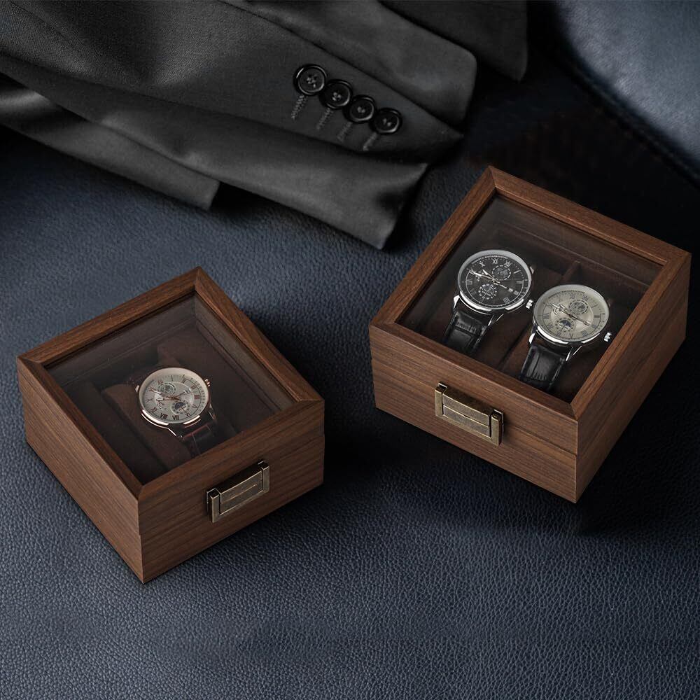 落ち着いた色味の木製収納ケースは大切な腕時計コレクションに相応しい安心感を与えます。シンプルですが、機能的なデザインは深さと直線にこだわり、上品と高級感を与えます。