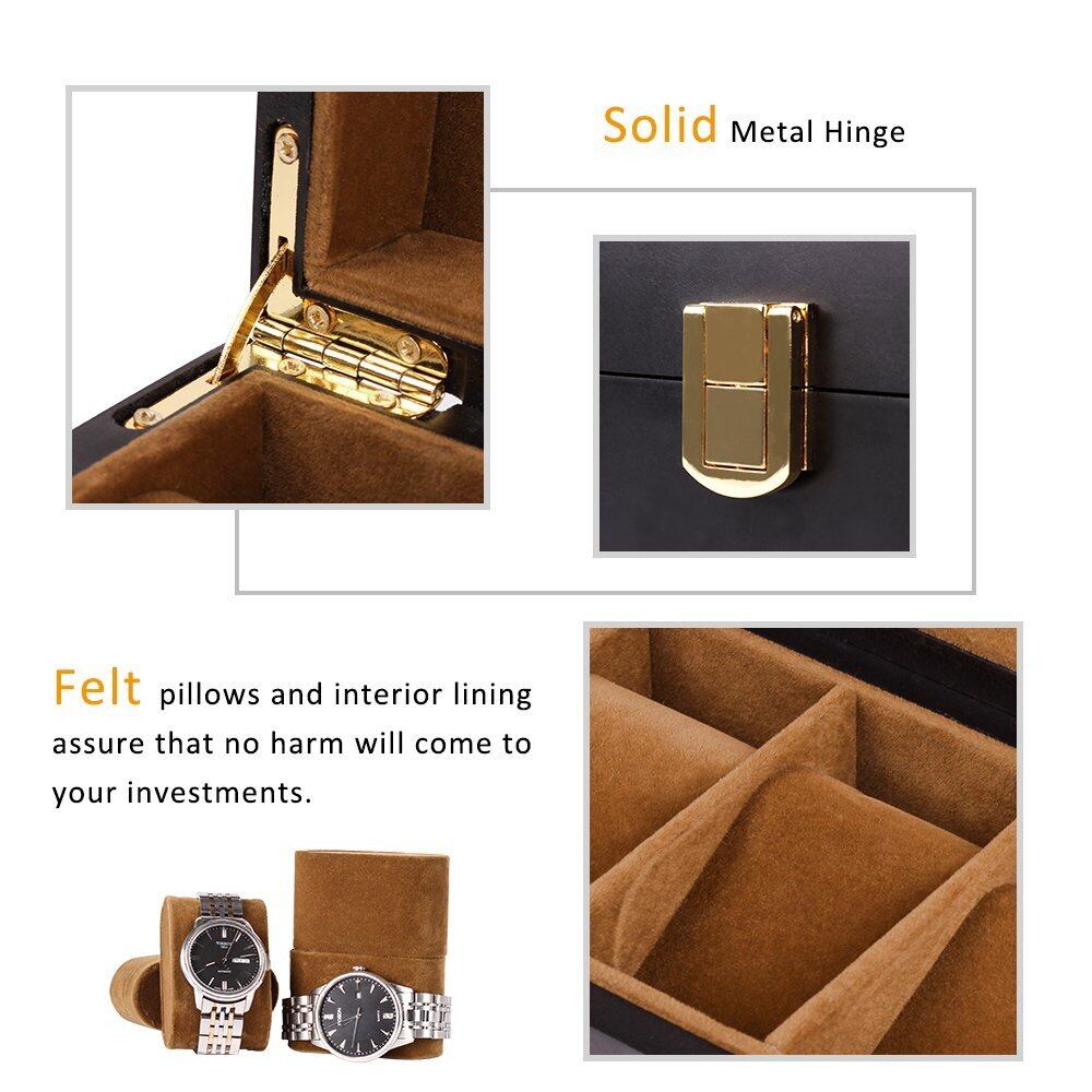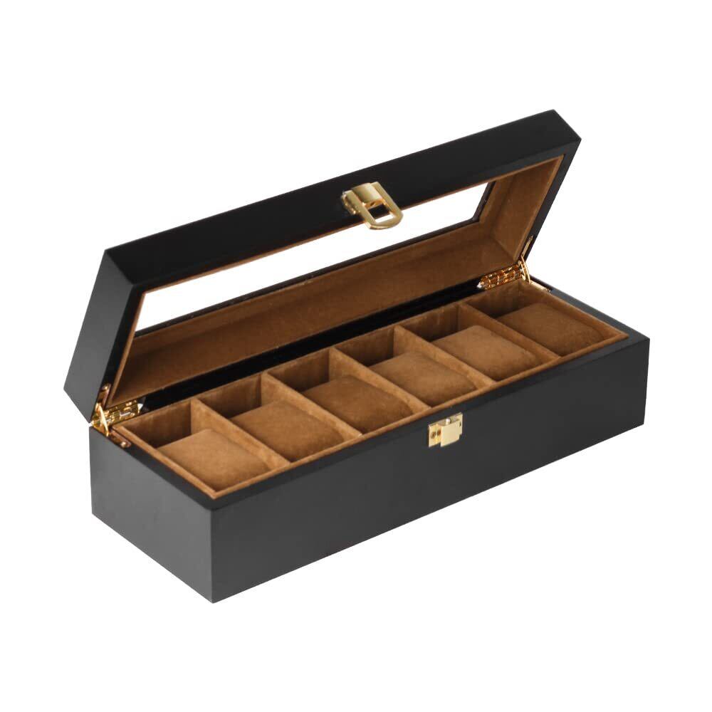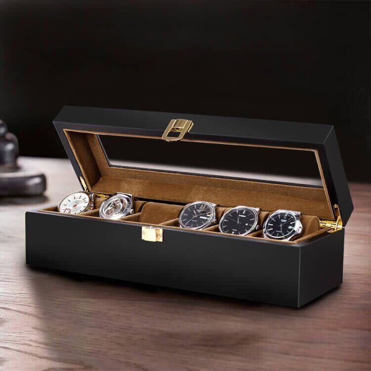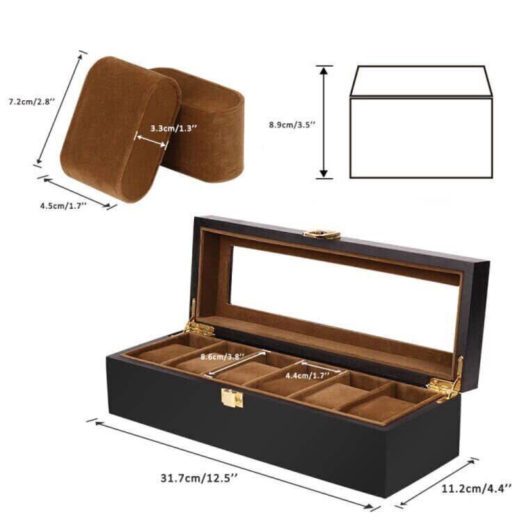 落ち着いた色味の木製収納ケースは大切な腕時計コレクションに相応しい安心感を与えます。シンプルですが、機能的なデザインは深さと直線にこだわり、上品と高級感を与えます。