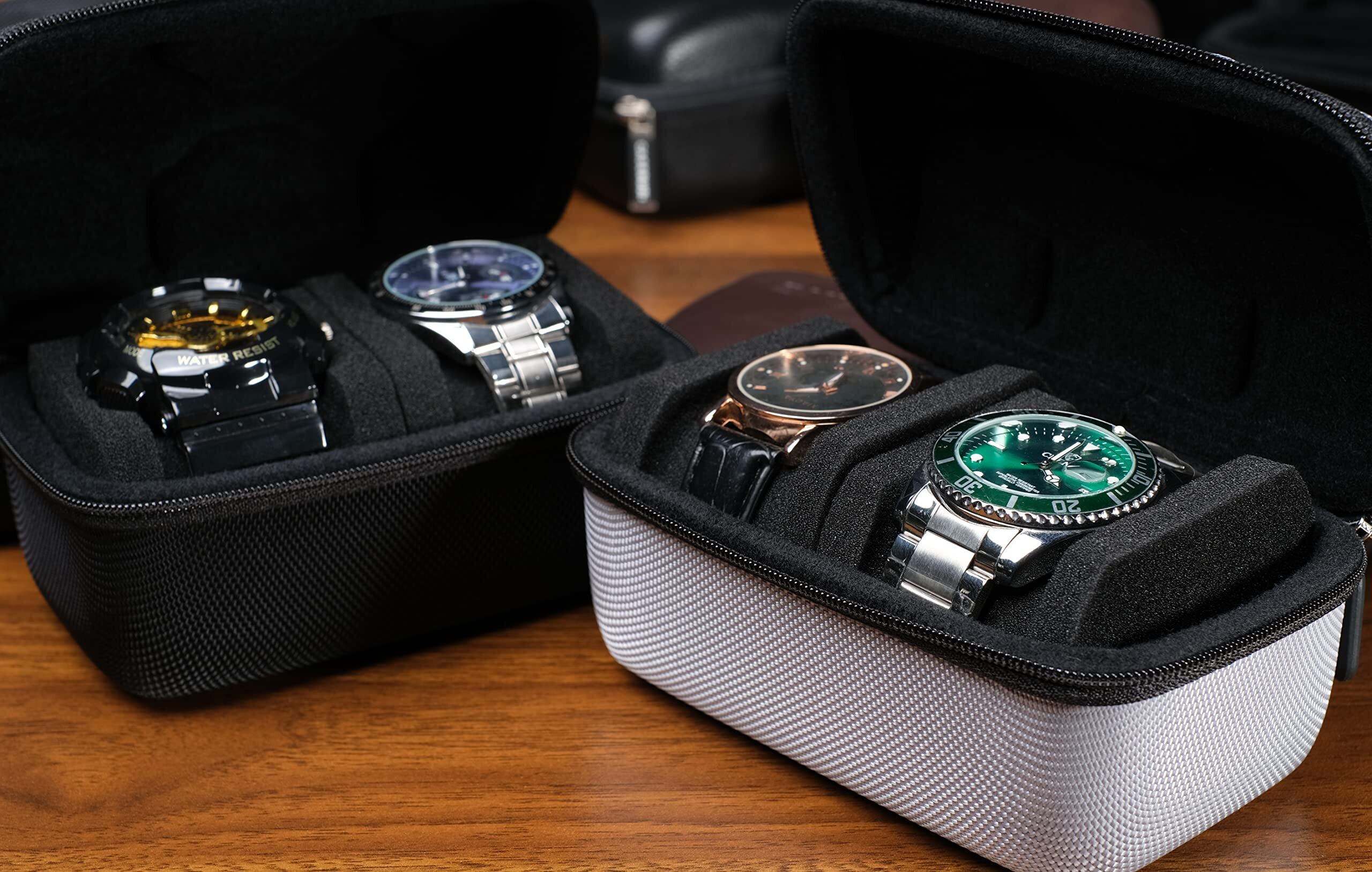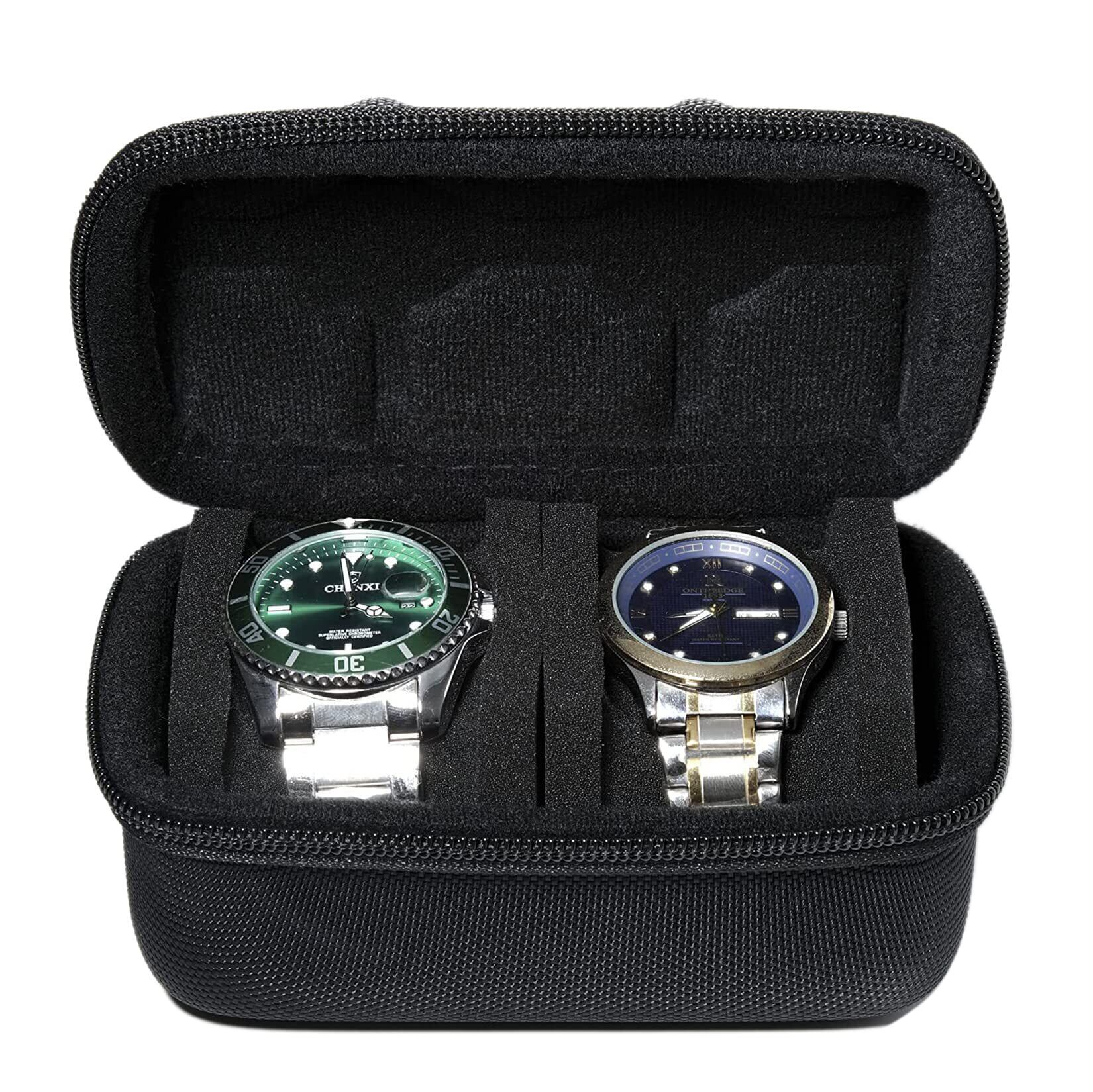 2本収納腕時計ケース、腕時計収納バッグ、旅行用腕時計収納ケース、ハードカバー保護、カスタムスポンジ枕 小型および大型の時計、ダイバーズウォッチ、スポーツウォッチに適合