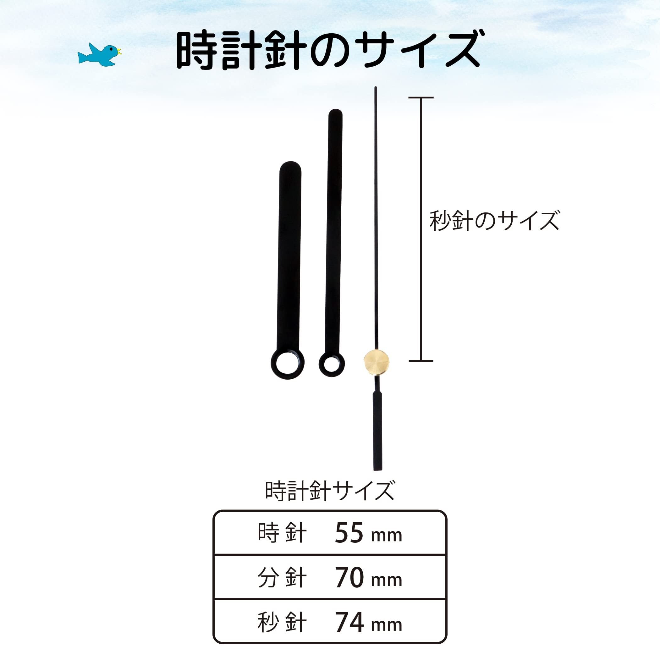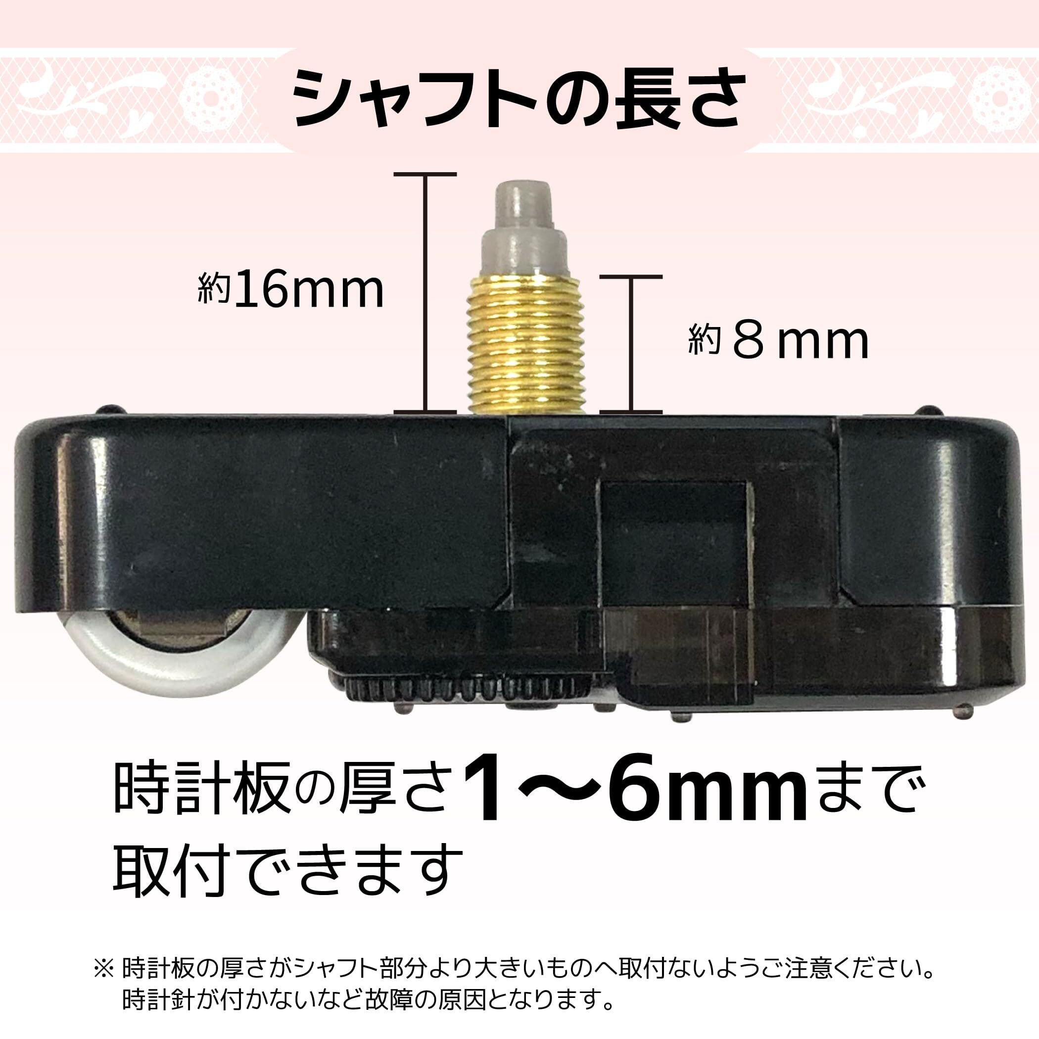 時計針サイズ;時針:55mm、分針:70mm、秒針:74mm シャフト長さ;16㎜(ねじ部分8mm)