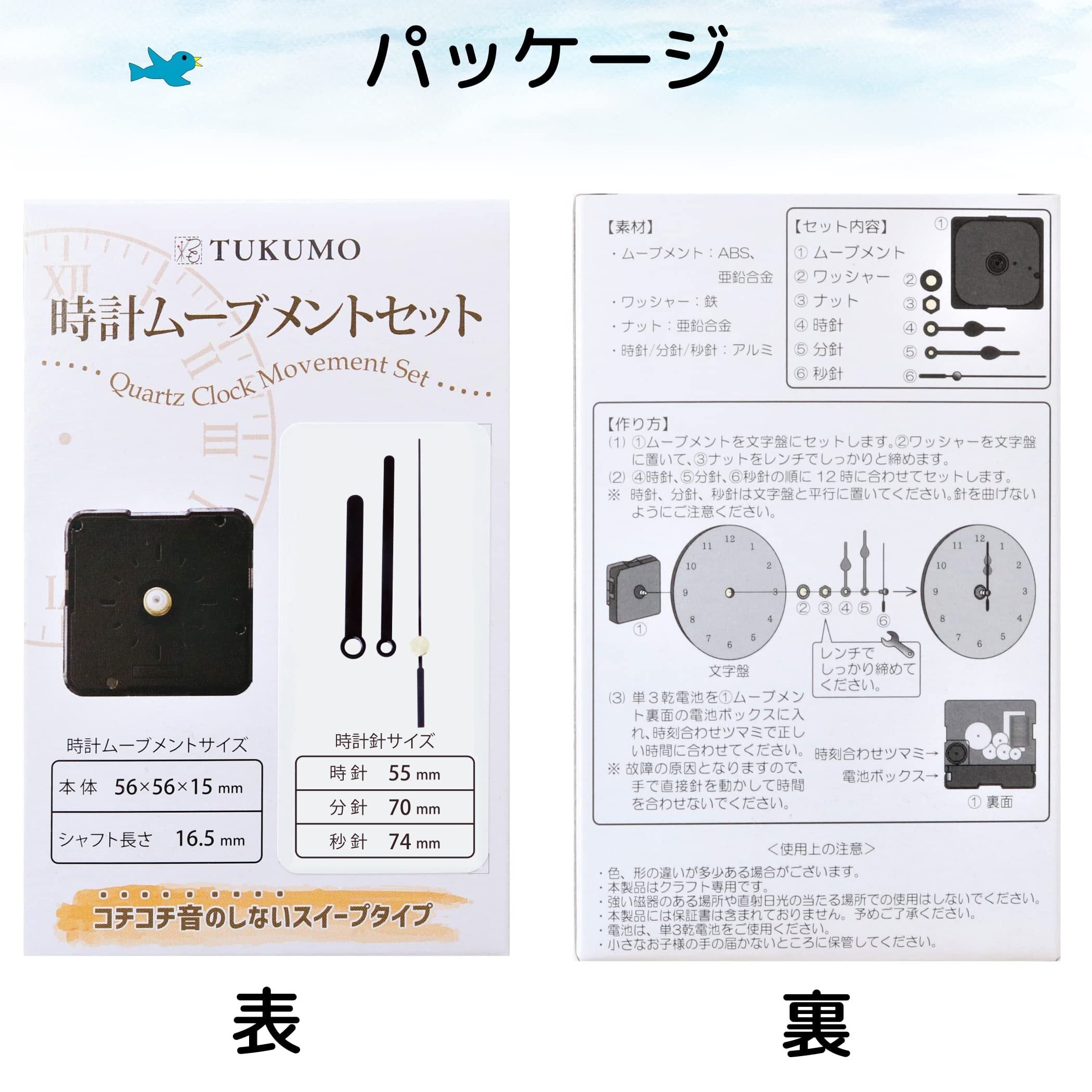 TUKUMO 時計ムーブメントセット スイープ秒針 クラフト用 補修 クォーツ 静音 長い (時計針 長い②)