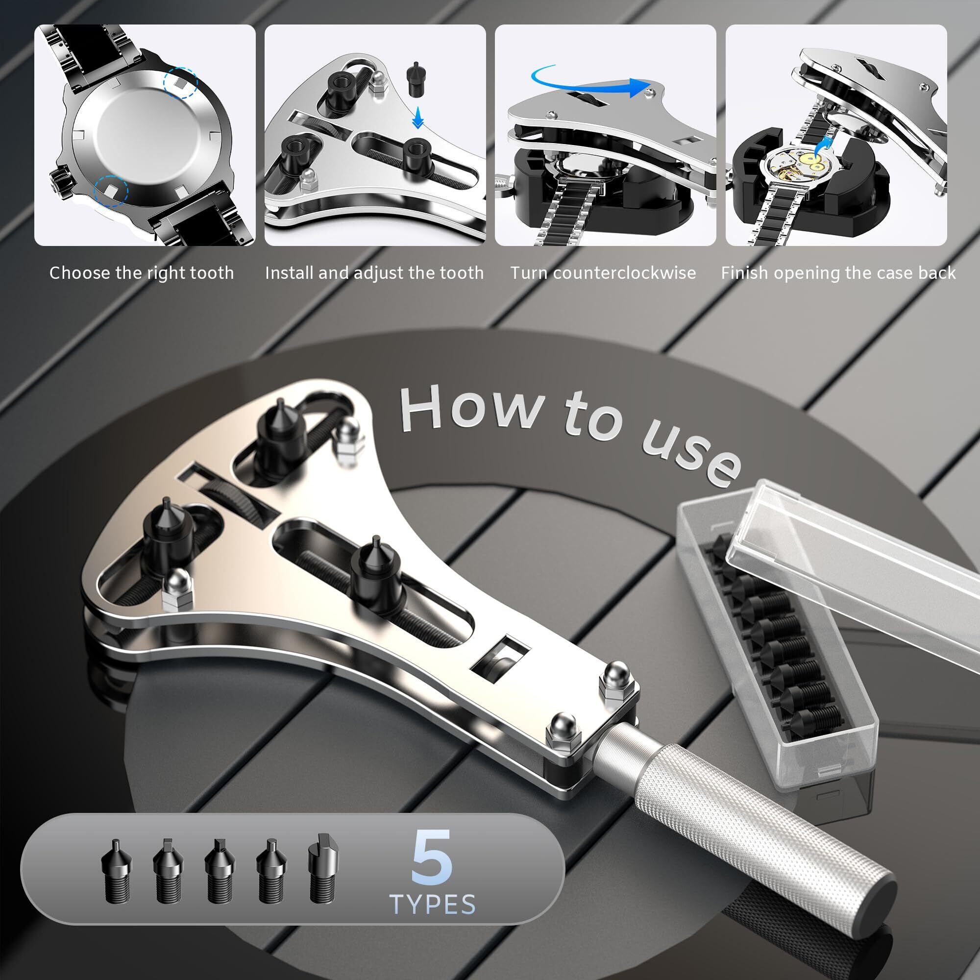 【2025 新時計修理キット】①JORESTの3本爪キャップオープナーは、ハンドルの下にラバースリーブを追加することで、ハンドルとそれに対応するスチール製の歯が実際の操作中にずれたり滑ったりすることが、市販の他の製品よりも少なくなるように改良されている;②新しい時計バンドリムーバー、固体のアップグレードより良い使用; ③新しいパンチ針、よりハードと耐久性。