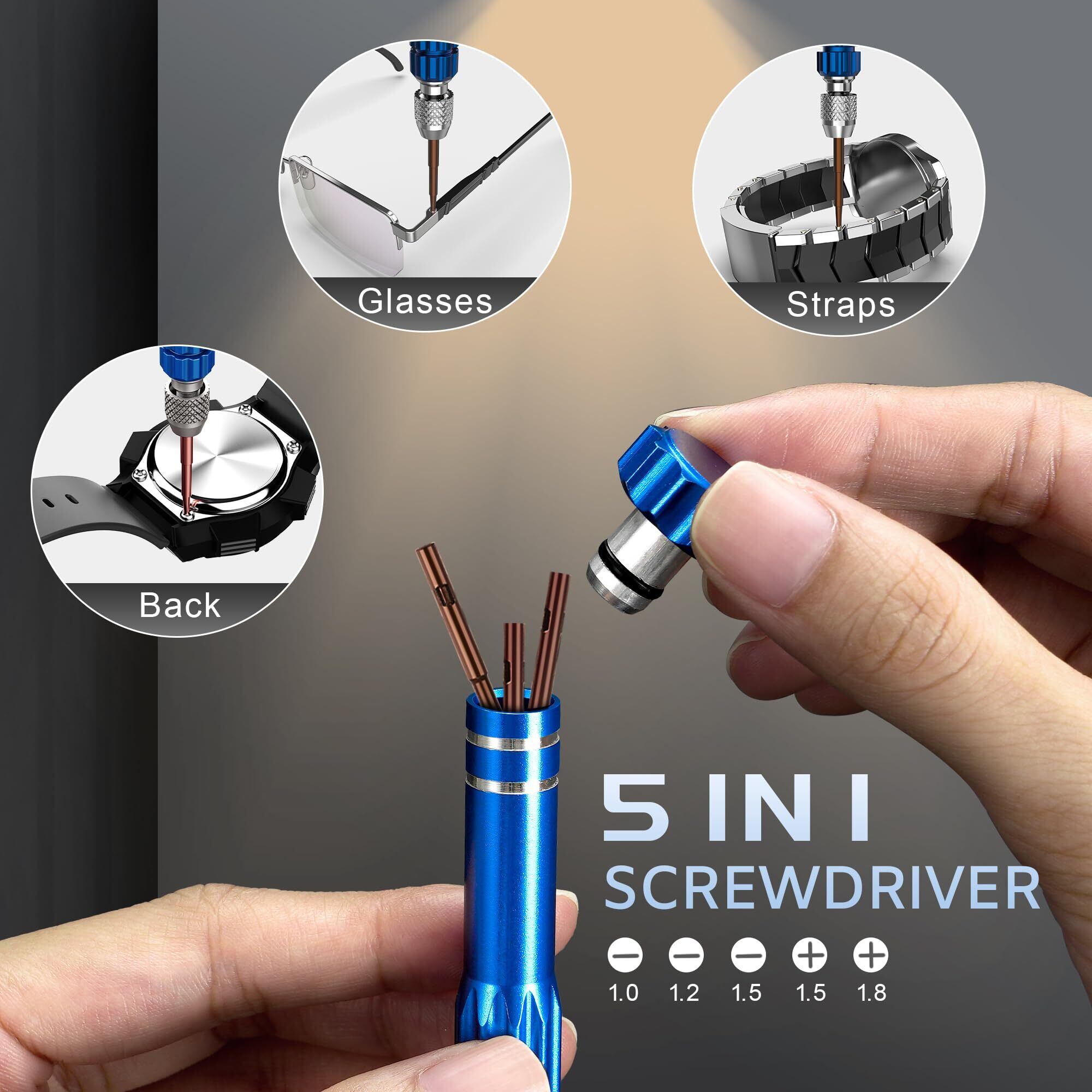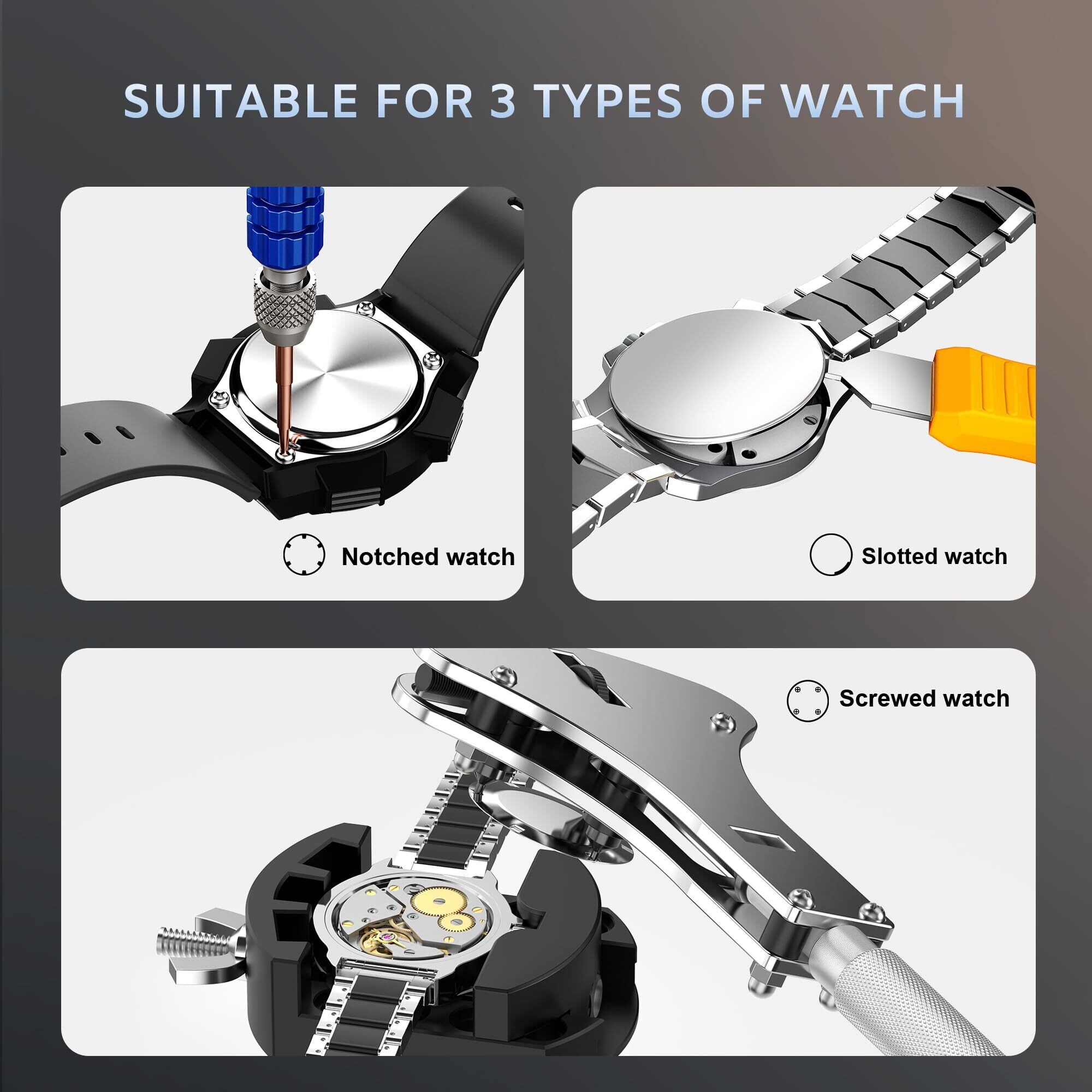 【幅広い用途】3種類の腕時計の裏蓋を開ける、腕時計のブレスレットを外す、腕時計のバンドを調整する、腕時計の電池を交換する、腕時計のネジを外すなど、様々なニーズに対応できるツールセット。
