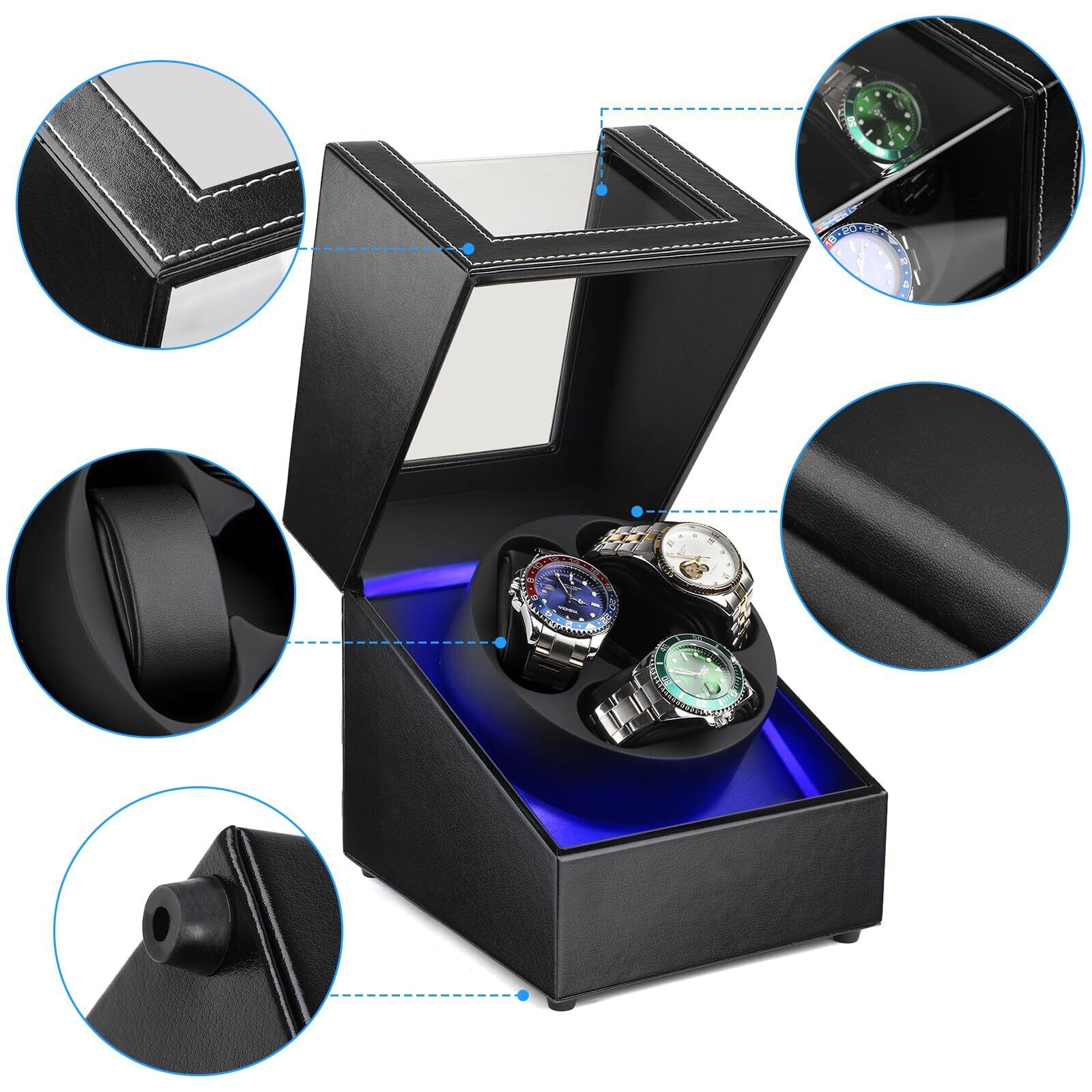 ワインディングマシーン (2本巻き) (3本巻き) (4本巻き+6本収納) (6本巻き+6本収納)ウォッチワインダー 自動巻き時計ワインディングマシーン 日本製 マブチモーター 静音設計 新型の腕時計自動巻き上げ機、男女の腕時計は全部使えます (C02:ブラック3+0P)