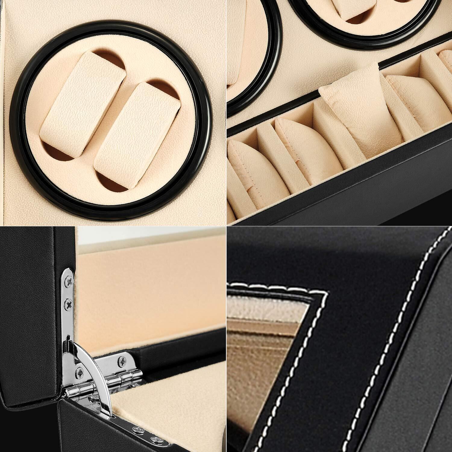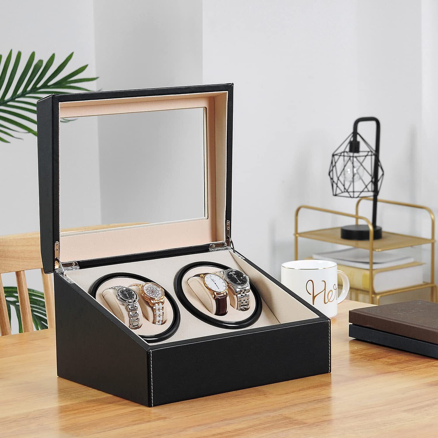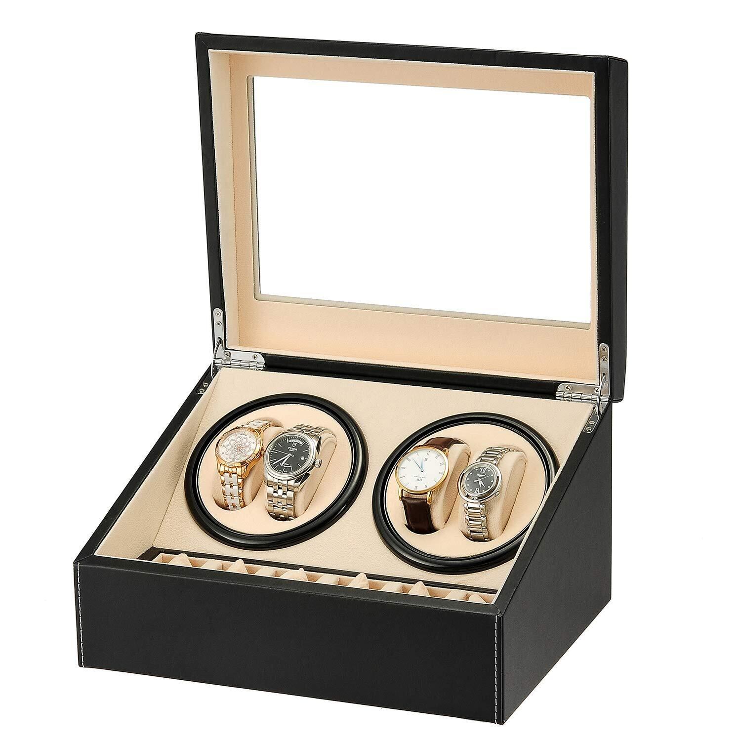 ワインディングマシーン ウォッチワインダー ワインダー 腕時計 自動巻き時計ワインディングマシーン 日本製 マブチモーター 腕時計自動巻き上げ機 腕時計収納ケース ジュエリー収納 時計バンド収納 (ブラック レザー-103B)