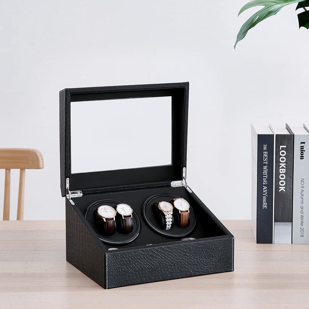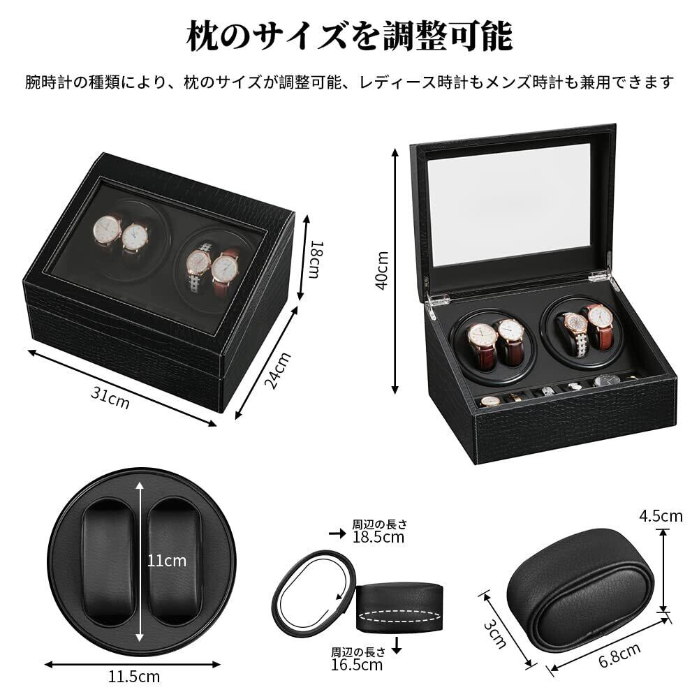 ワインディングマシーン(4+6本巻き) ウォッチワインダー 自動巻きワインディングマシーン 日本製 マブチモーター 設計 新型の腕時計自動巻き上げ機、木製、男女の腕時計は全部使えます 2023年アップグレード (ワニ模様-103E)