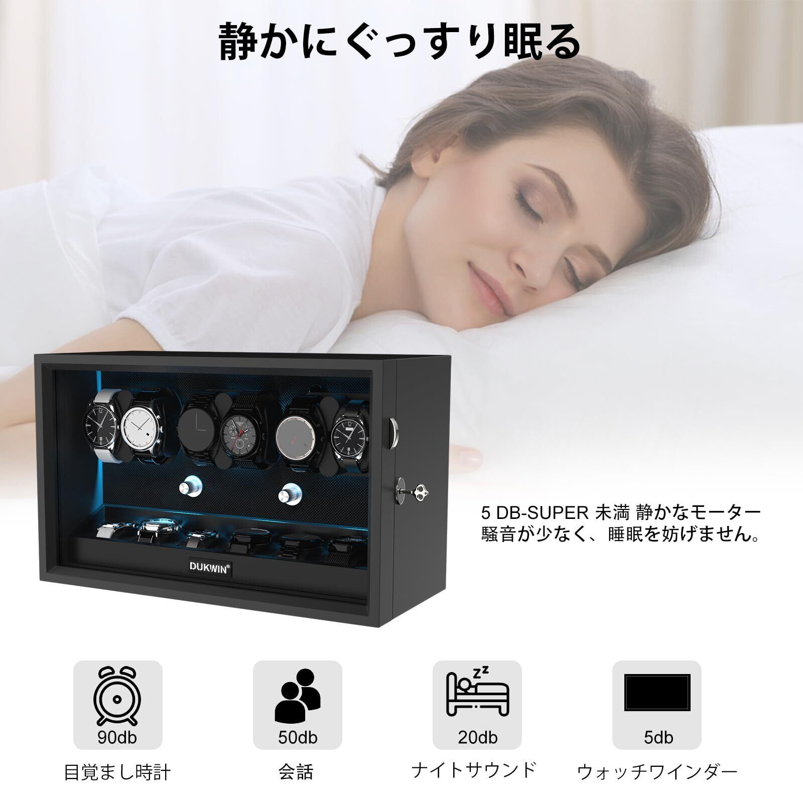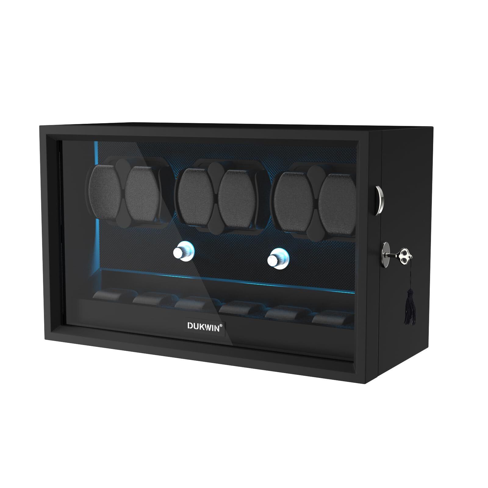 DUKWIN 時計用化粧箱 ワインディングマシーン 6本巻き上げ+6本収納 ウォッチワインダー 自動巻き上げ機 4/6/8/12本巻き 腕時計ケース 日本製マブチモーター 静音 LEDライト付き 高級収納ケース (ブラック)