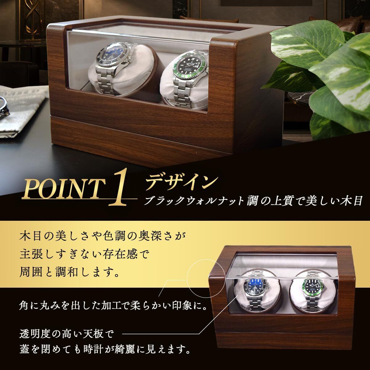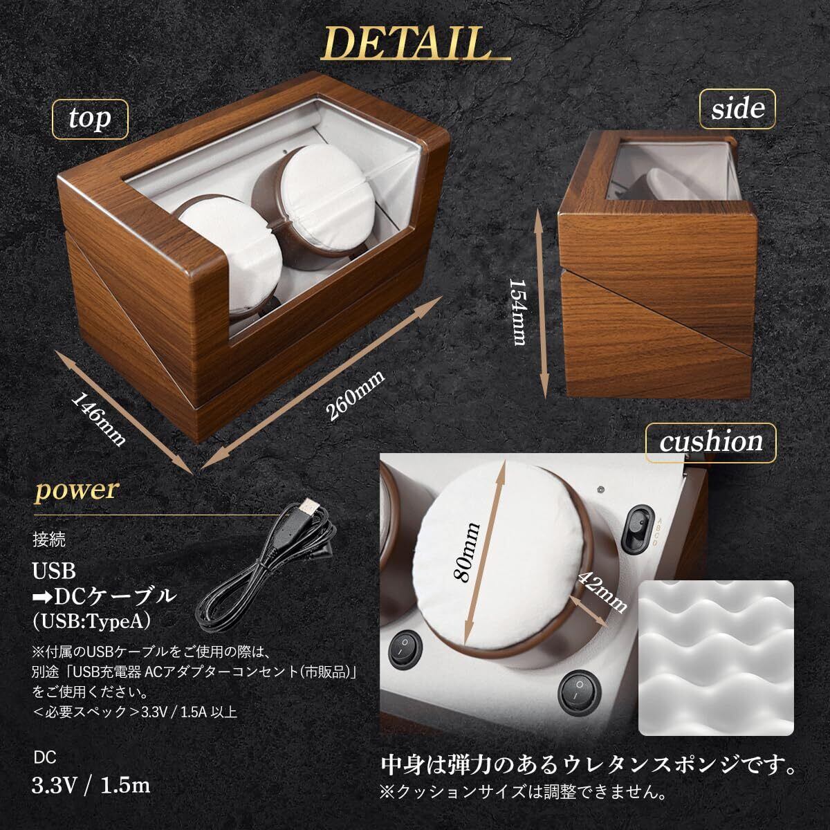 IGIMI イギミ 木製ウォッチワインダー ブラックウォルナット調 デュオ 2本巻き 12時センターストップ マブチモーター使用 USB対応 4モード切替 IG-ZERO114B-5 IG05020205002 ワインディングマシン