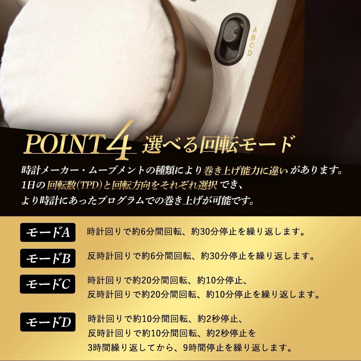 4種類の回転プログラムで貴方の時計にピッタリのモードをセレクト