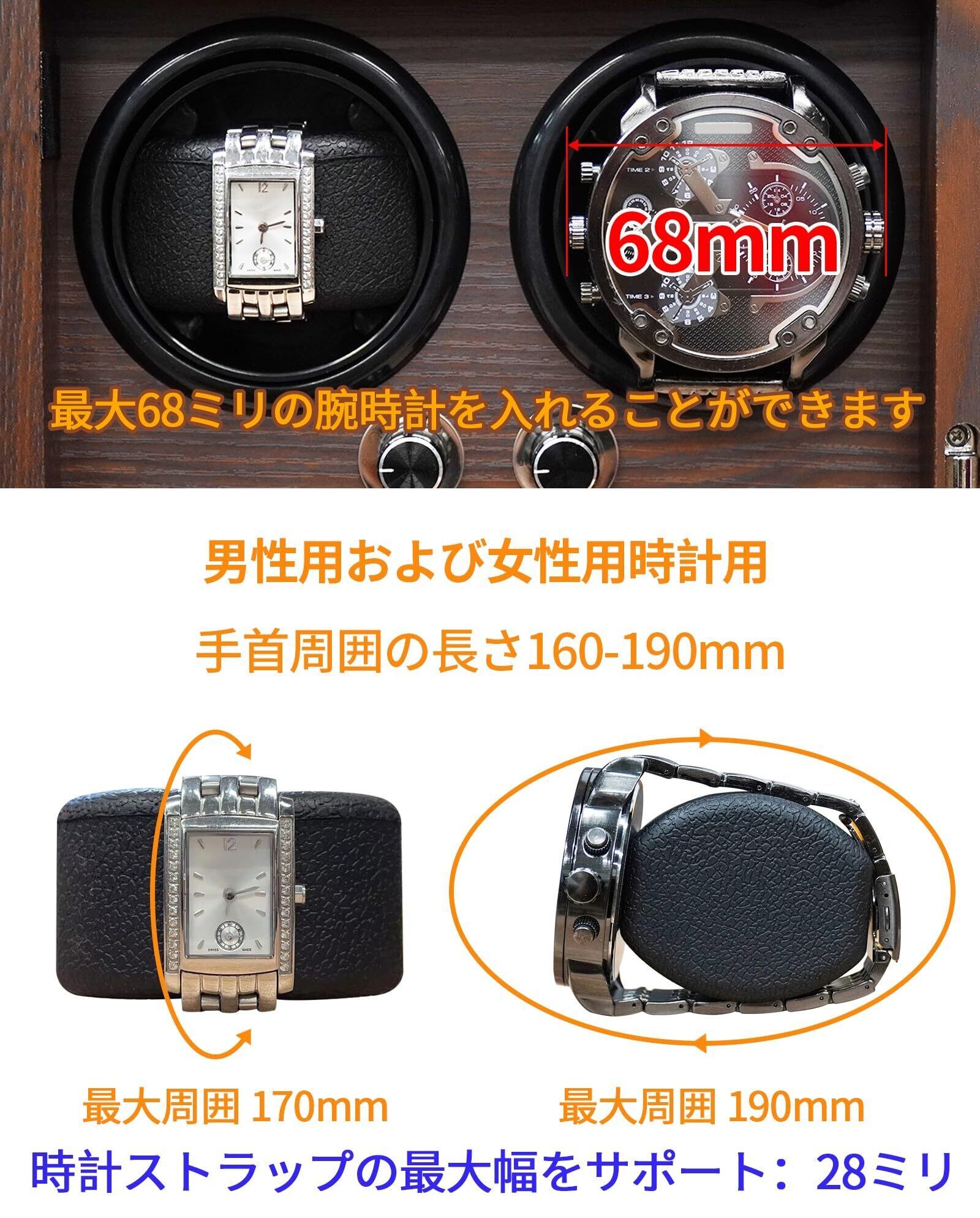 ハイエンドの人気デザイン : 静音設計、防磁設計、動作音が非常に静かなので、寝室や書斎に置くこともおすすめします。2本腕時計収納、内蔵のLED照明、暗くでも素早く正確に腕時計を入手できます、落ち着いた雰囲気を醸し出します。インターロック機能付き、扉を開いた際ホルダーの回転を自動停止。