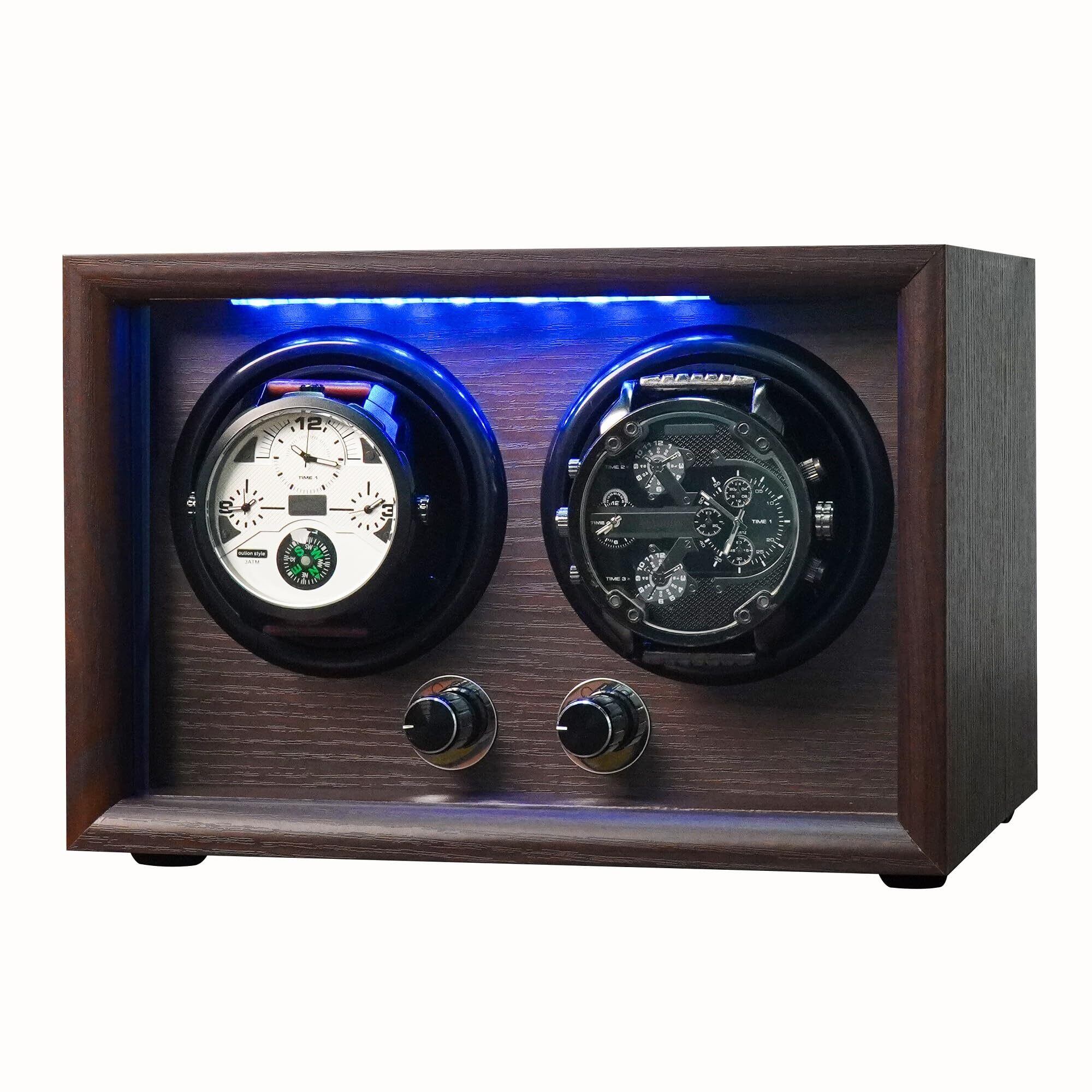 ORYX ワインディングマシーン 腕時計自動巻き上げ機 ウォッチワインダー 2本巻き 時計ケース 自動巻き 調整可能クッション LEDライト付 USB電源 高級木製